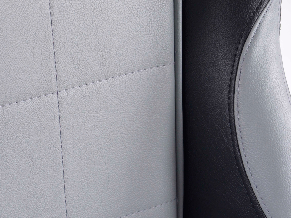 Der FK Sportsitz Bürodrehstuhl Baltimore in schwarz/grau bringt das echte Rennwagen-Feeling in Ihr Büro. Mit seinem hochwertigen Kunstlederbezug und der ergonomisch geformten Sitzfläche sorgt er für höchsten Komfort – auch an langen Arbeitstagen. Die Rückenlehne sowie die Höhe des Stuhls sind individuell verstellbar, sodass Sie stets die ideale Sitzposition finden. Das verchromte Fußkreuz unterstreicht die sportlich-edle Optik und gewährleistet zudem eine stabile Basis mit einer maximalen Belastbarkeit bis zu 100 kg.