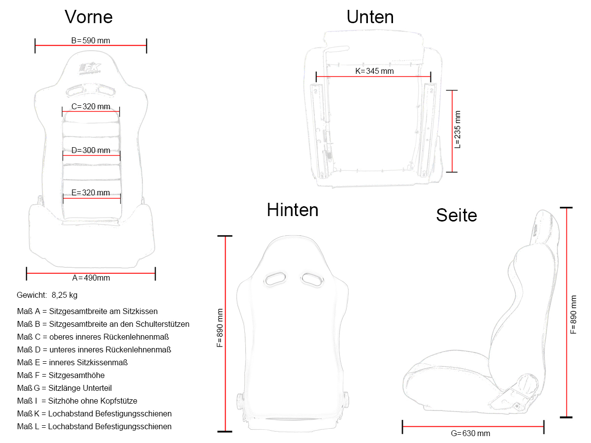 Die FK Sportsitze Edition 2 in Stoffausführung bieten eine sportlich-aggressive Optik und ein unvergessliches Fahrerlebnis. Mit ihrem markanten Rennsport-Look und der leuchtend roten Farbe verleihen sie jedem Fahrzeug ein dynamisches Erscheinungsbild. Dank der Vollschalenkonstruktion genießen Sie eine optimale Körperunterstützung, besonders bei engagierter Fahrweise. Die Sportsitze überzeugen durch hochwertiges Material, ergonomische Formgebung und zuverlässigen Seitenhalt – für maximalen Komfort und Kontrolle.