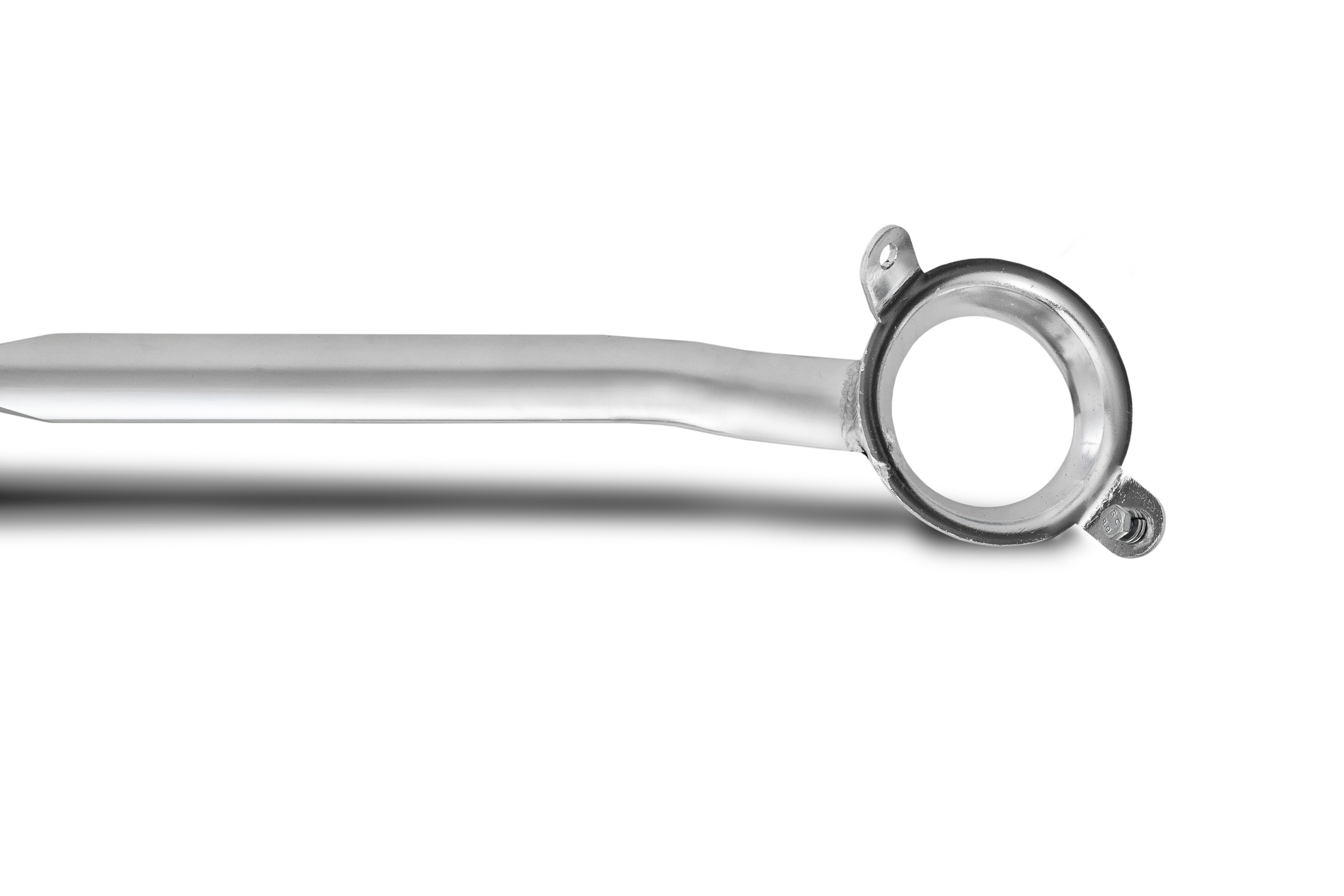Gefertigt aus hochwertigem, poliertem Aluminium überzeugt die Domstrebe durch ihre edle Optik und ihr geringes Gewicht. Dank der integrierten Verstellschraube lässt sich die Steifigkeit individuell an Fahrstil und Fahrwerk anpassen. Der Einbau erfolgt vorne oben, wobei Bohren erforderlich ist.