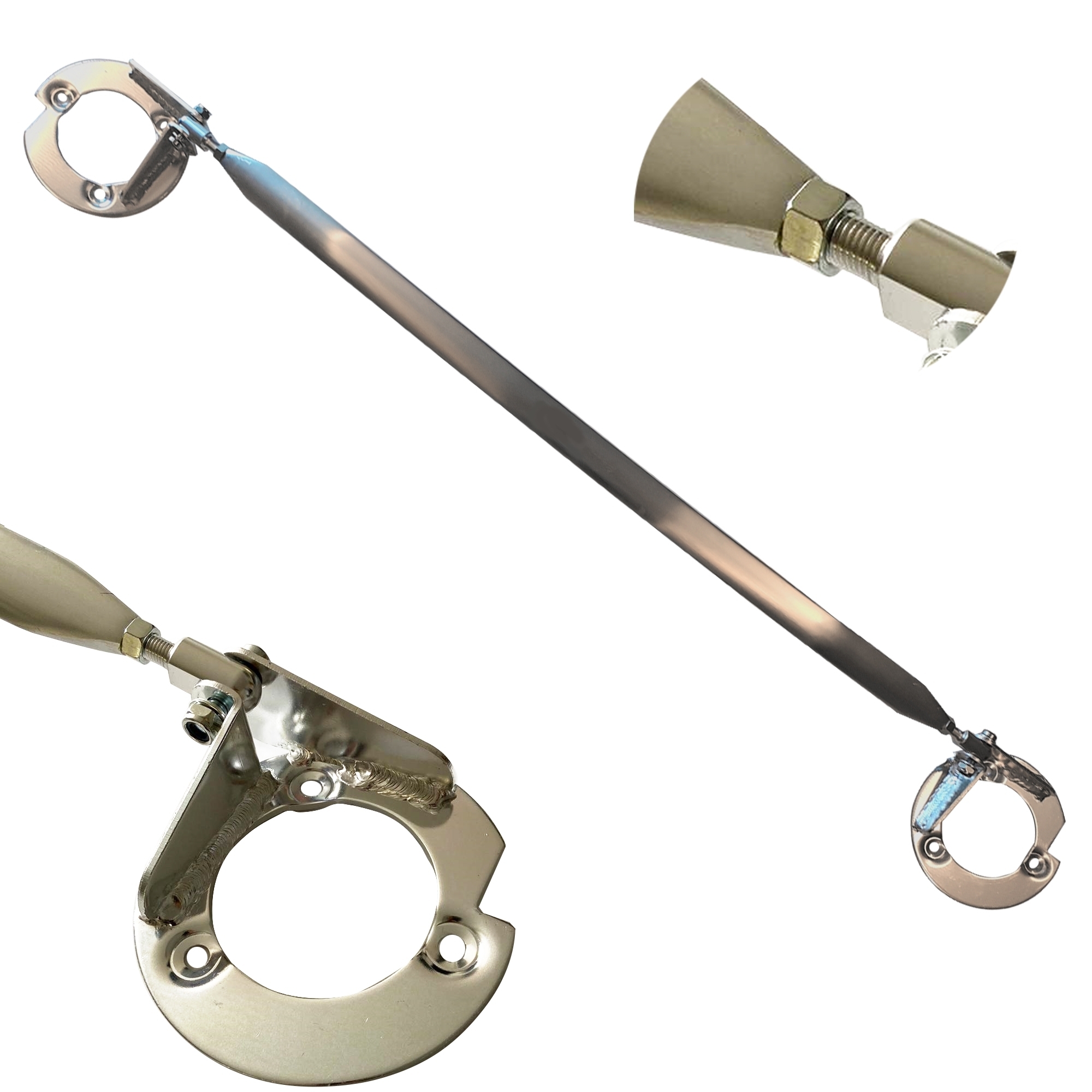 Die verstellbare Aluminium-Domstrebe sorgt für zusätzliche Stabilität an der Vorderachse und verbessert das Handling Ihres Fahrzeugs spürbar. Sie ist besonders vorteilhaft bei sportlicher Fahrweise, Tieferlegung oder den Einbau von Sportfahrwerken. Durch die integrierte Verstellschraube lässt sich die Domstrebe individuell an Ihre Fahrweise und Ihr Fahrwerk anpassen, um eine optimale Straßenlage zu erreichen und die Verwindungssteifigkeit der Karosserie zu erhöhen.