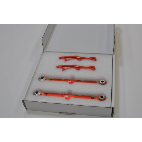 Die K-Sport Aluminium-Querlenker für die Hinterachse ermöglichen eine präzise Einstellung des Sturzes und bieten damit ein deutlich verbessertes Fahrverhalten besonders im sportlichen Einsatz. Dank der robusten Aluminiumkonstruktion vereinen sie geringes Gewicht mit hoher Stabilität und Langlebigkeit. Diese Querlenker sind speziell für Performance-orientierte Fahrer entwickelt, die ihr Fahrzeug auf der Rennstrecke oder für sportliches Fahren optimieren möchten. Bitte beachten Sie, dass es sich um Rennsportteile handelt, die ohne TÜV-Teilegutachten geliefert werden.