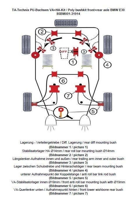 Dieses Komplettset enthält alle notwendigen Buchsen zur Optimierung von Stabilisator, Querlenkern, Schubstreben, Differentiallagerung und Koppelstangen. Ideal für sportlich ambitionierte Fahrerinnen und Fahrer, die ihren E30 gezielt aufwerten möchten, ohne auf Alltagstauglichkeit zu verzichten. Die Buchsen sind eintragungsfrei und können ohne zusätzliche Abnahme montiert werden.