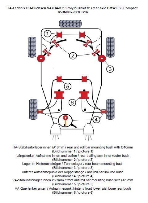 Weiterführende Links zu "TA Technix PU-Buchsen Kit 32-teilig passend für BMW 3er Serie E36 Compact"