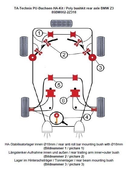 Weiterführende Links zu "TA Technix PU-Buchsen Kit 20-teilig Hinterachse Ø 18mm Stabi passend für BMW Z3 E36"