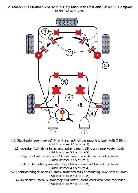 Weiterführende Links zu "TA Technix PU-Buchsen Kit 32-teilig passend für BMW 3er Serie E36 Compact"
