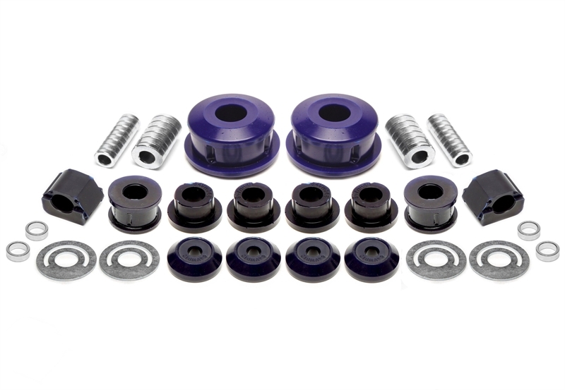 Dieses Set ist passend für Modelle mit einem Ø 20mm Stabilisator und beinhaltet alle notwendigen PU-Buchsen für die Stabilisatorlager außen und innen, sowie für die Querlenkerlager vorne und hinten. Durch die präzise Passform wird das Fahrzeughandling verbessert und das Ansprechverhalten der Vorderachse spürbar direkter.