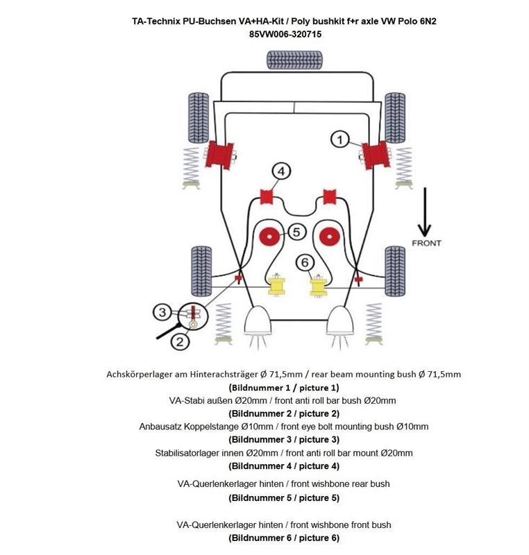 Hinweis: Modelle mit Ø 20mm Stabilisator an der Vorderachse und Ø 71,5mm Achskörperlager an der Hinterachse
