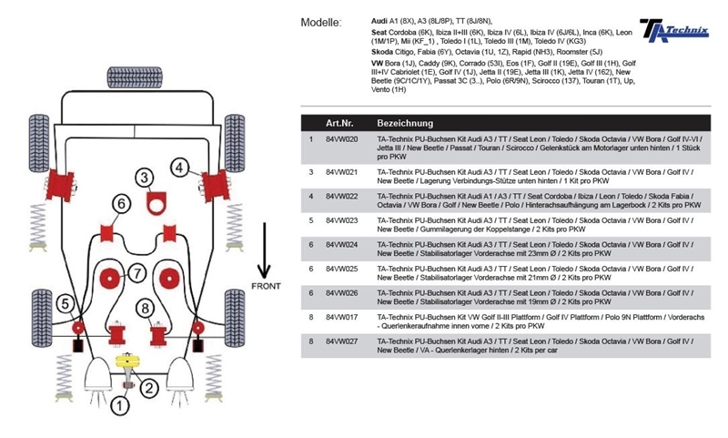 Weiterführende Links zu "TA Technix PU-Buchse Motorlager unten hinten passend für Audi, VW, Seat, Skoda"