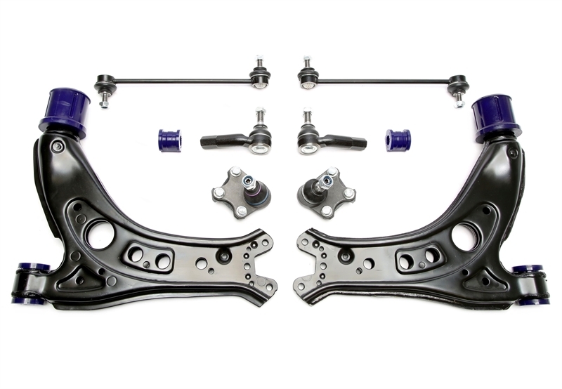 Das Set enthält sämtliche benötigten Teile für die Vorderachse, inklusive Querlenkern, Traggelenken, Spurstangenköpfen, Koppelstangen sowie kompletten PU-Buchsen Sets. Alle Komponenten sind langlebig konstruiert und eintragungsfrei verwendbar. Damit eignet sich das Komplettset perfekt für sportlich ambitionierte Fahrer, die Wert auf Fahrpräzision und ein straffes Lenkgefühl legen.