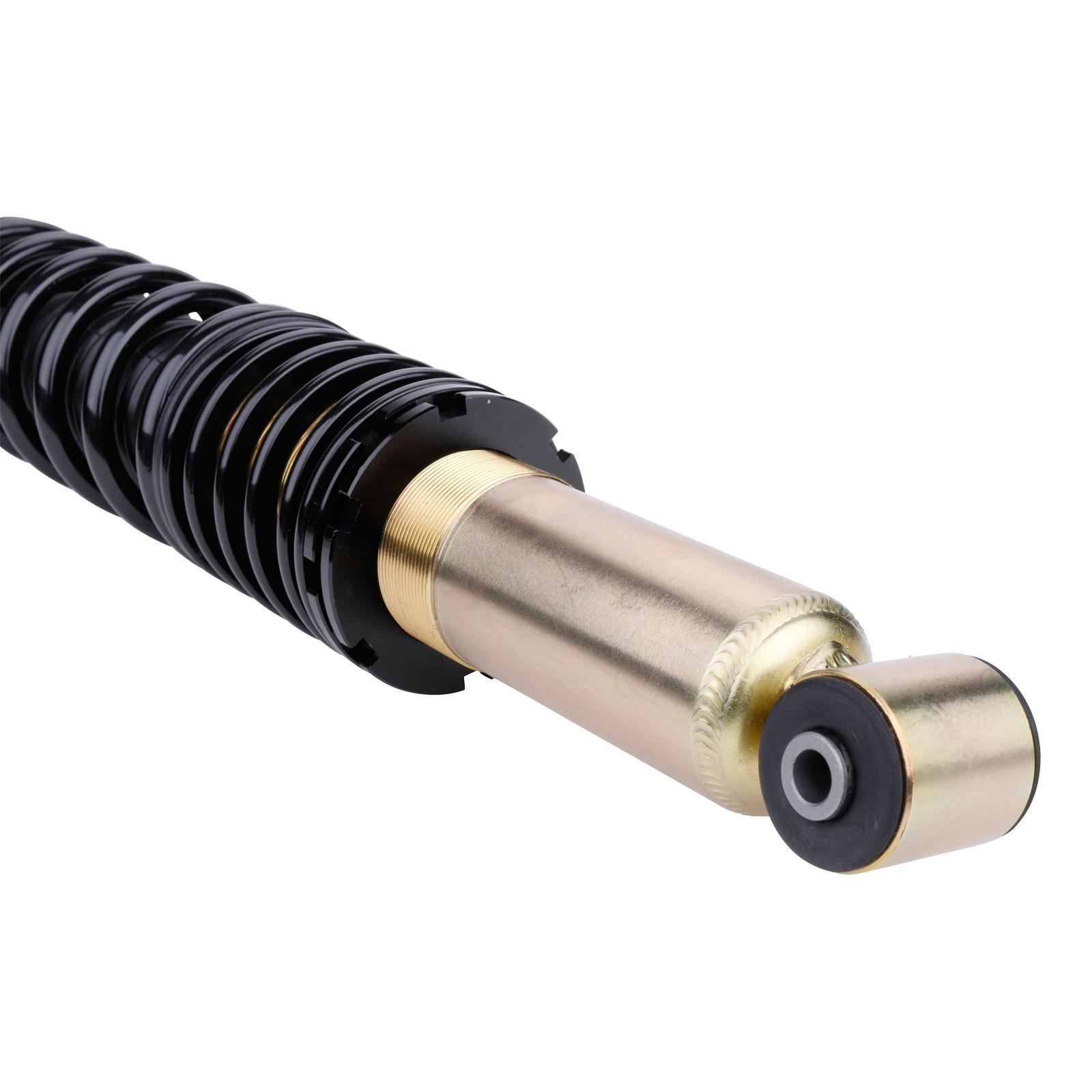 Hochwertige verzinkte Federbeine, lackierte Dämpfer und eloxierte Aluminium-Verstellringe garantieren Langlebigkeit und Witterungsbeständigkeit. Der Einbau erfolgt fahrzeugspezifisch und ohne Modifikationen an der Karosserie. Für einen zusätzlichen Show&Shine-Effekt steht ausreichend Restgewinde zur Verfügung, um eine besonders tiefe Tieferlegung zu erzielen.