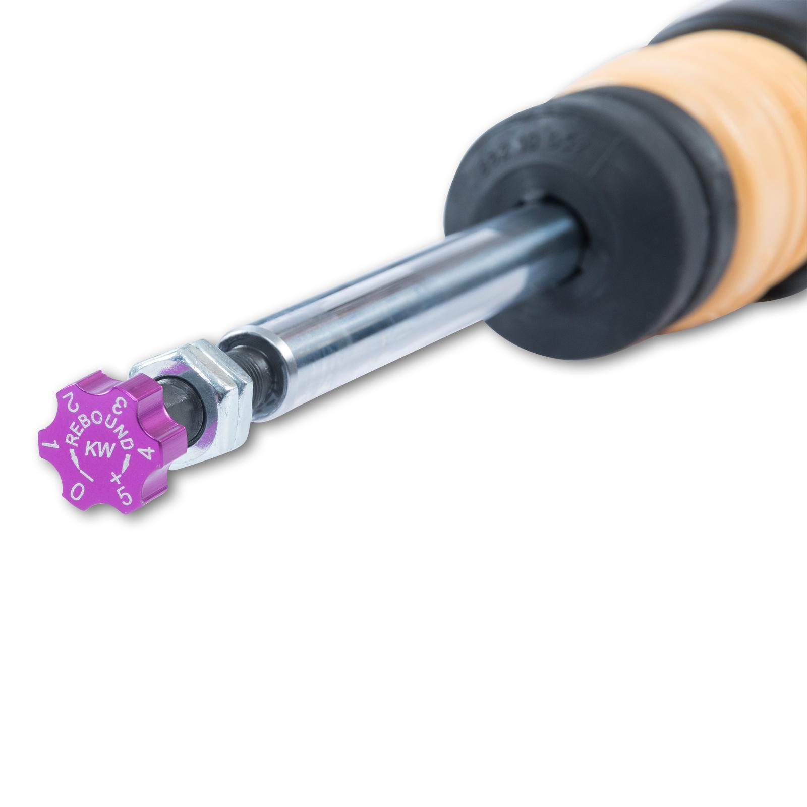 Dank der hochwertigen Edelstahltechnologie „inox-line“ ist das Fahrwerk korrosionsfrei und besonders langlebig. Über die einstellbare Zugstufendämpfung mit 16 Klicks können Sie das Fahrverhalten Ihres Fahrzeugs exakt anpassen – ob für mehr Stabilität bei schneller Fahrt oder höchsten Komfort im Alltag. KW Testingenieure haben die Abstimmung in aufwändigen Testreihen optimiert, damit Sie auf Autobahnen und Landstraßen jederzeit ein harmonisches, komfortables Fahrerlebnis genießen.