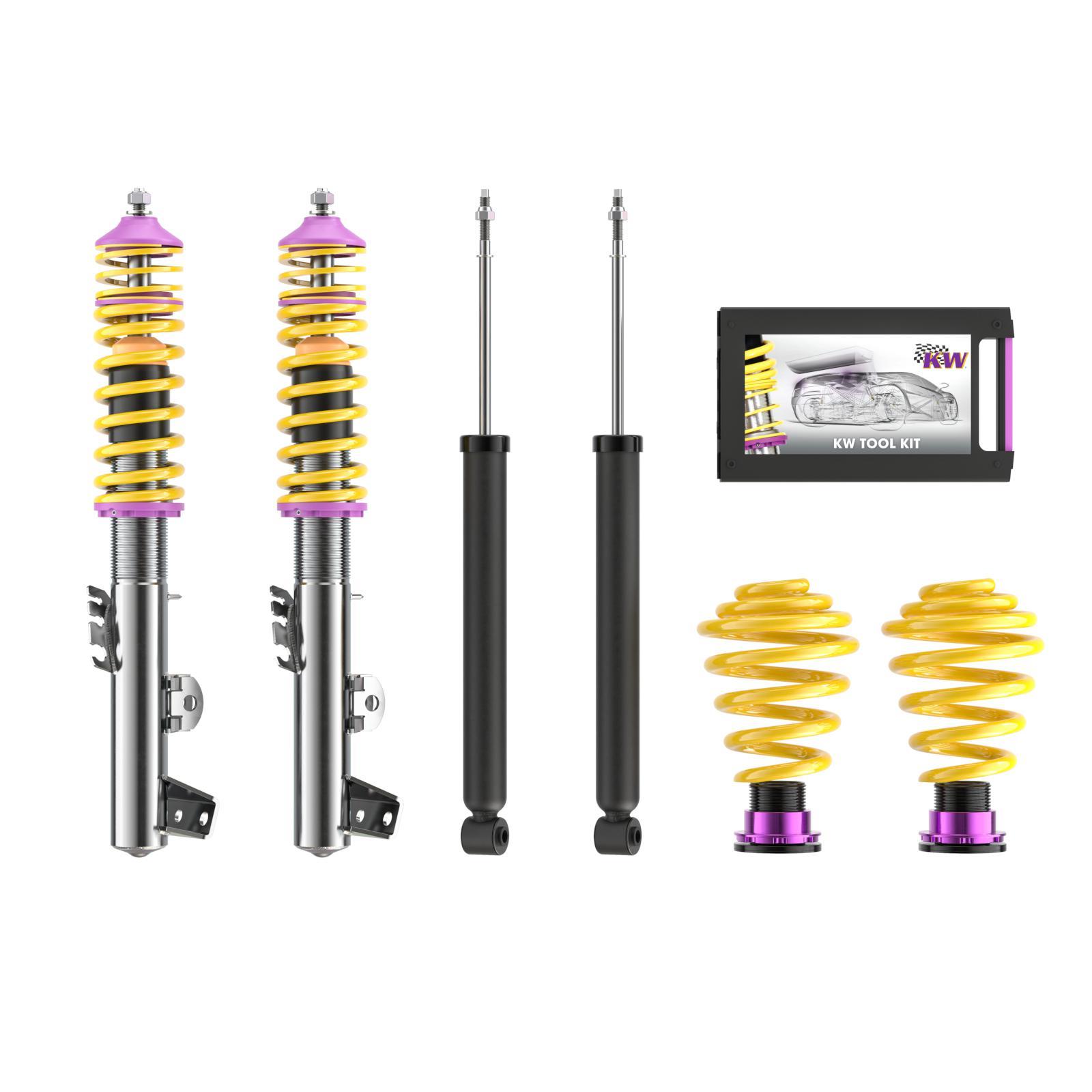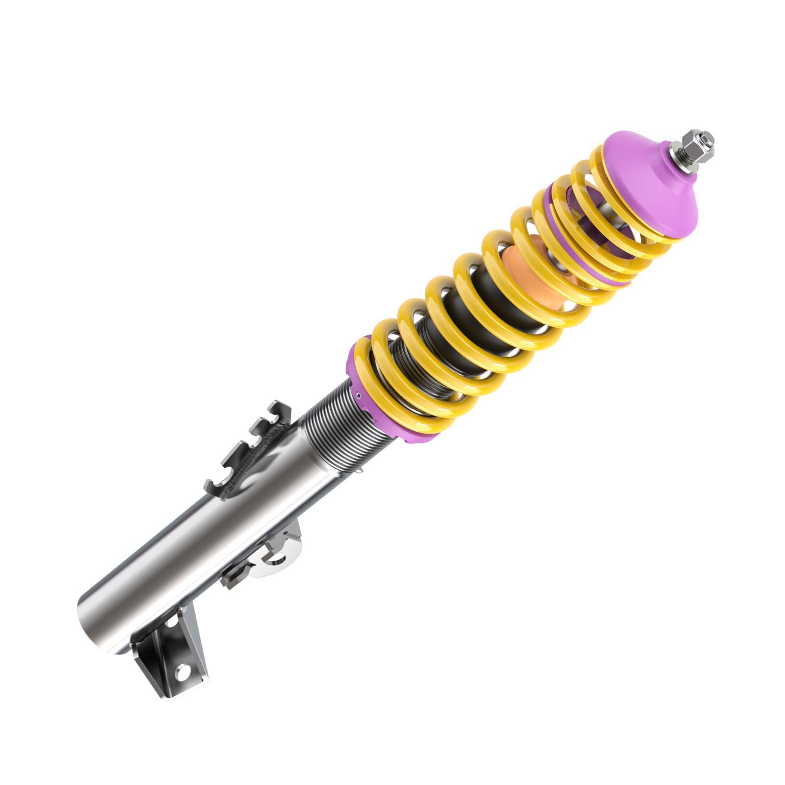 Das KW Gewindefahrwerk V1 inox bietet Ihnen den idealen Einstieg in die Welt der sportlichen Tieferlegung – passend für BMW 3er Cabriolet (E36). Mit seinem hochwertigen Edelstahlaufbau der "inox-line" punktet es durch Langlebigkeit, präzises Fahrverhalten und eine sportlich-harmonische Dämpfungseinstellung. Dank des fahrzeugspezifisch vorkonfigurierten Dämpfersystems erzielen Sie eine optimale Balance zwischen Fahrkomfort und Dynamik. Das Gewinde ermöglicht eine stufenlose Tieferlegung im geprüften Bereich – perfekt für individuelle Optik und Performance. KW setzt auf korrosionsbeständige Materialien, präzise Verarbeitung und höchste Qualität "Made in Germany". Damit profitieren Sie langfristig von einem sportlich-direkten Handling, verbessertem Fahrverhalten und außergewöhnlicher Haltbarkeit – selbst bei voller Beladung.
