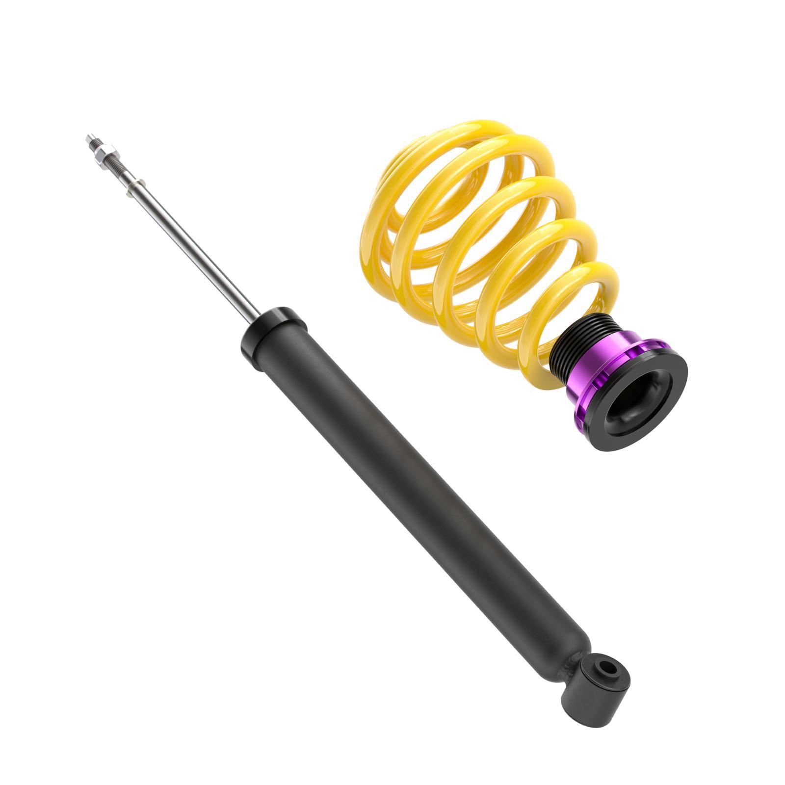 Die stufenlose Höhenverstellung ermöglicht eine individuelle Tieferlegung von 40–80 mm an der Vorderachse und 30–60 mm an der Hinterachse. So können Sie nicht nur das Fahrverhalten, sondern auch die Optik Ihres Fahrzeugs optimal an Ihre Wünsche anpassen. KW setzt dabei auf aufeinander abgestimmte Komponenten, Federbeine aus Edelstahl und die bewährte Dämpfertechnologie aus dem Rennsport. Das Ergebnis ist ein präzises Handling, reduzierte Wankbewegungen und eine sportlich-direkte Straßenlage.