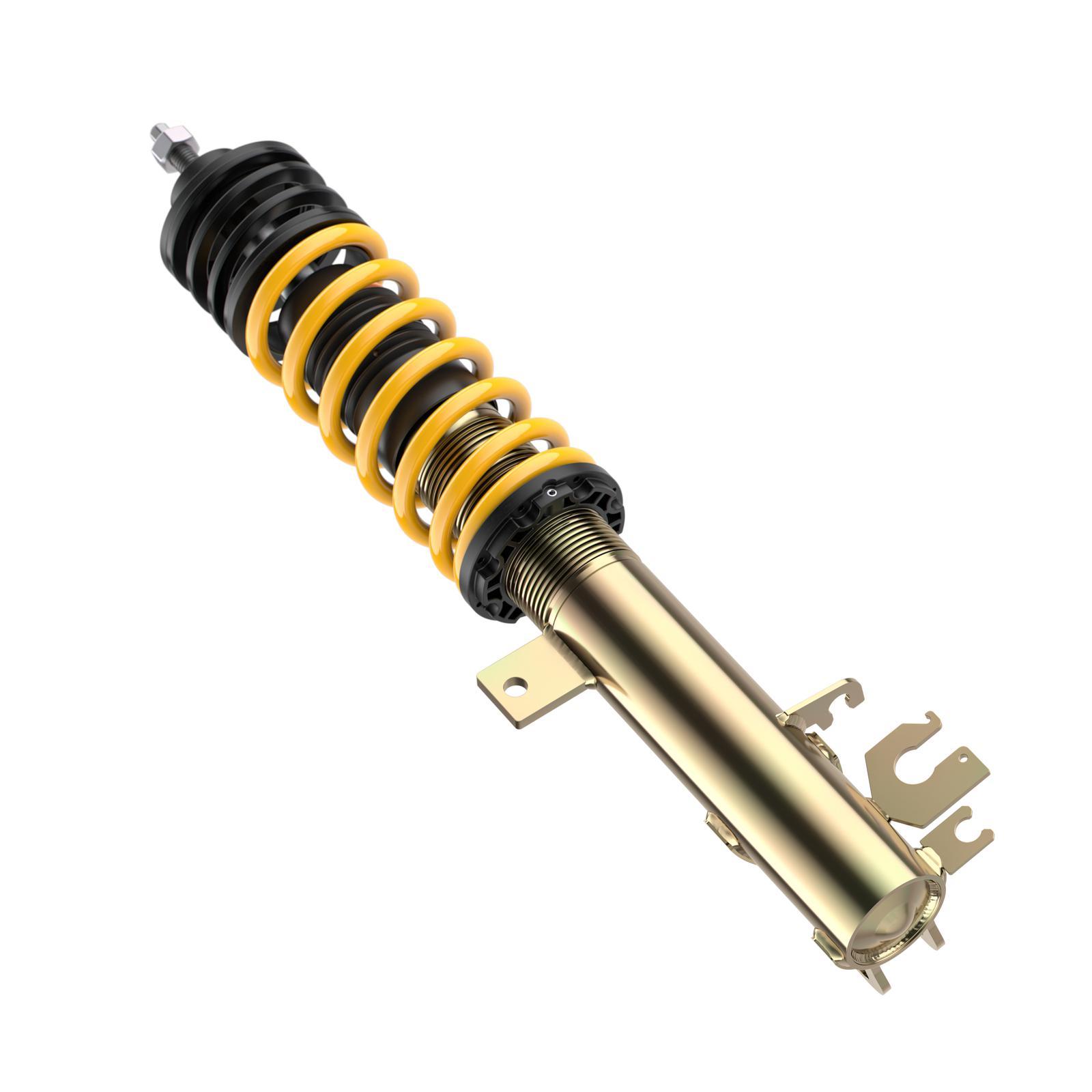 Das ST XA Gewindefahrwerk mit Härteverstellung bietet sportlich ambitionierten Fahrerinnen und Fahrern die Möglichkeit, das Fahrverhalten ihres Fahrzeugs individuell abzustimmen. Dank der in Zusammenarbeit mit KW entwickelten Dämpfungstechnologie lässt sich die Zugstufe komfortabel oder sportlich einstellen – je nach persönlicher Präferenz. Sie profitieren somit von einer optimalen Balance zwischen Alltagstauglichkeit und präzisem Handling.