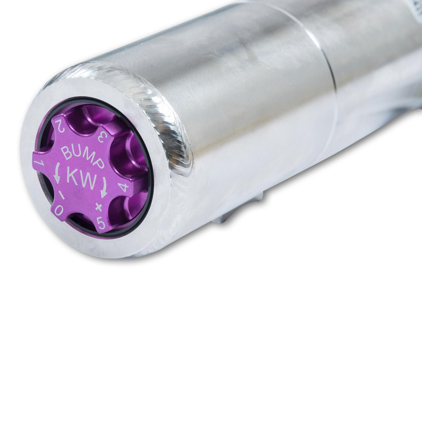 Die patentierte Ventiltechnik von KW ermöglicht eine feinfühlige Anpassung der Dämpfercharakteristik. Dabei können Sie mit 16 Klicks die Zugstufe sowie mit 12 Klicks die Druckstufe exakt einstellen und so Fahrkomfort und Performance nach Ihren Wünschen kombinieren. Durch die stufenlose Tieferlegung zwischen 35–65 mm an Vorder- und Hinterachse lässt sich nicht nur die Optik verbessern, sondern auch die Fahrdynamik maßgeblich steigern.