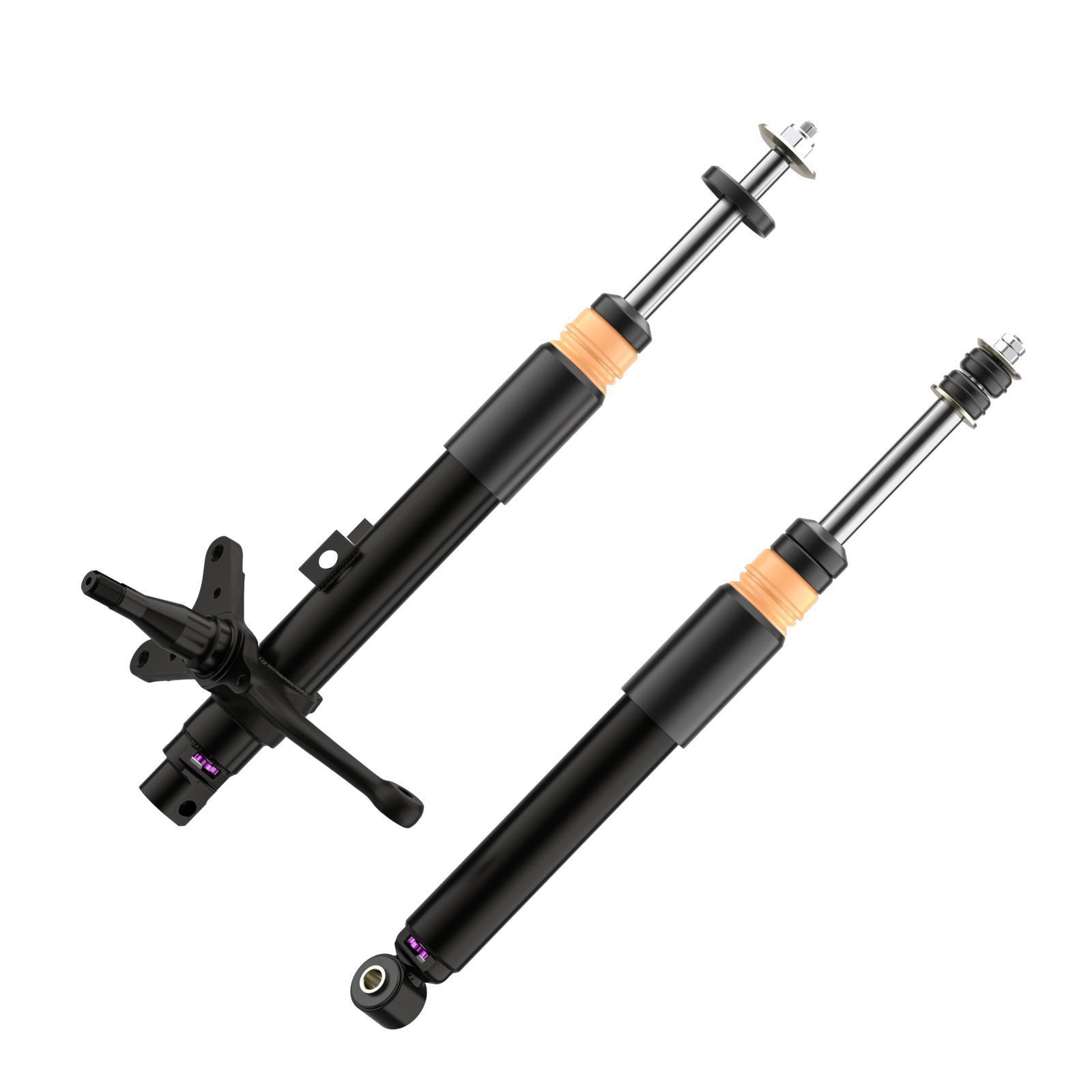 | Modellhinweis: | Dämpfersatz inklusive Achsschenkel aus verzinktem Stahl, Dämpfer verfügen über leicht zu bedienende Einstellräder. Bauartbedingt in der Zugstufe nur bei zugänglicher Kolbenstange., Nur für Fahrzeuge deren HA-Dämpfer unten mit einer M14 Schraube befestigt ist, Nur für Fahrzeuge mit dem S Modell Bremssattel (Lochabstand Bremssattel 89 mm) |