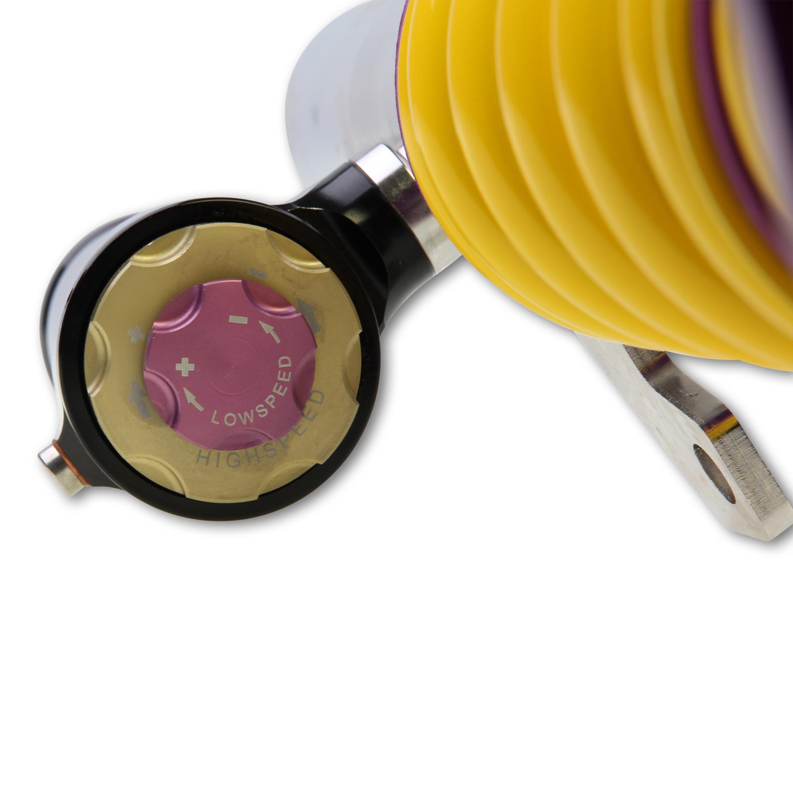 Mit der 3-fach einstellbaren KW 2-Ventil Dämpfertechnologie (16 Klicks Zugstufe, 6 Klicks Druckstufe Low-Speed, 14 Klicks Druckstufe High-Speed) können Sie das Setup individuell auf Gewicht, Reifenwahl und Fahrstil abstimmen. Die intuitive Einstellung erfolgt über farbcodierte Einstellräder direkt am Ausgleichsbehälter. Hochwertige Materialien wie Edelstahl sorgen für Langlebigkeit und extreme Belastbarkeit.