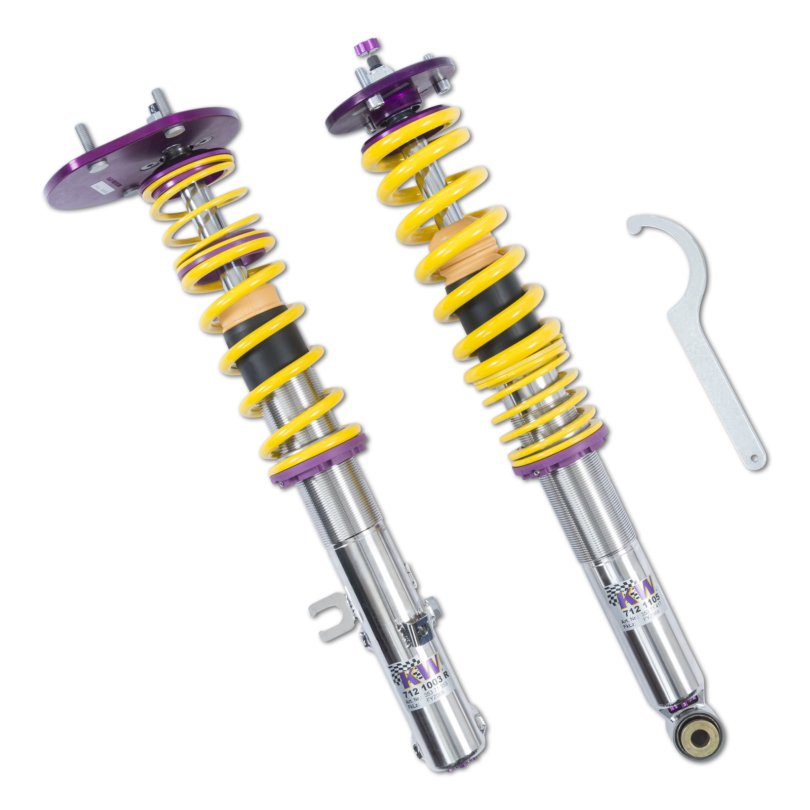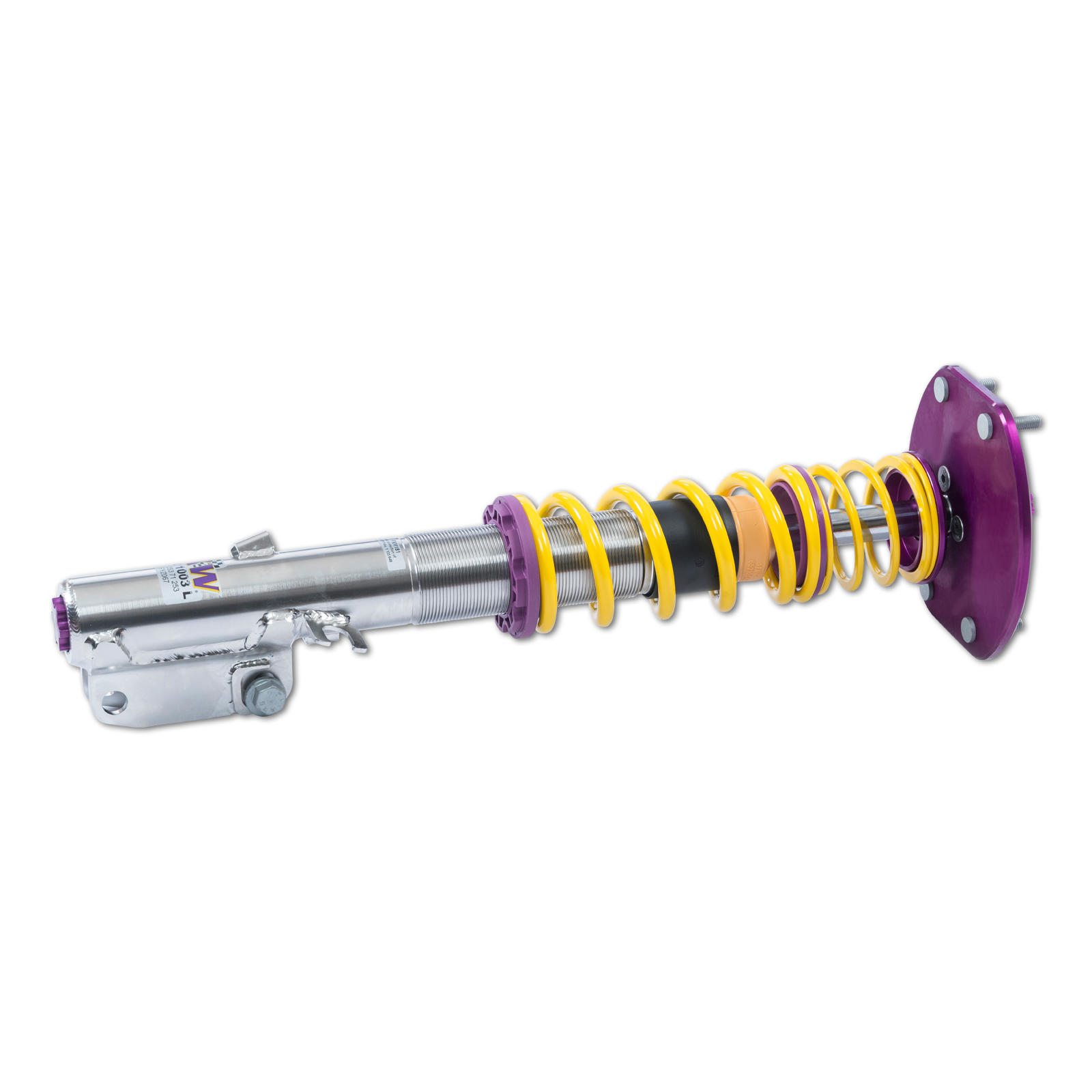 Das KW Gewindefahrwerk V3 Clubsport passend für Porsche 911 Targa (964) überzeugt durch Rennsporttechnologie kombiniert mit alltagstauglicher Zuverlässigkeit. Entwickelt auf der anspruchsvollsten Rennstrecke der Welt, der Nürburgring Nordschleife, bietet es höchste Performance für sportlich ambitionierte Fahrerinnen und Fahrer. Dank der individuellen Einstellmöglichkeiten lässt sich das Fahrwerk optimal an Fahrzeuggewicht, Reifen und Streckenverhältnisse anpassen. Die aus Edelstahl gefertigte Konstruktion sorgt dabei für maximale Haltbarkeit und Korrosionsbeständigkeit.