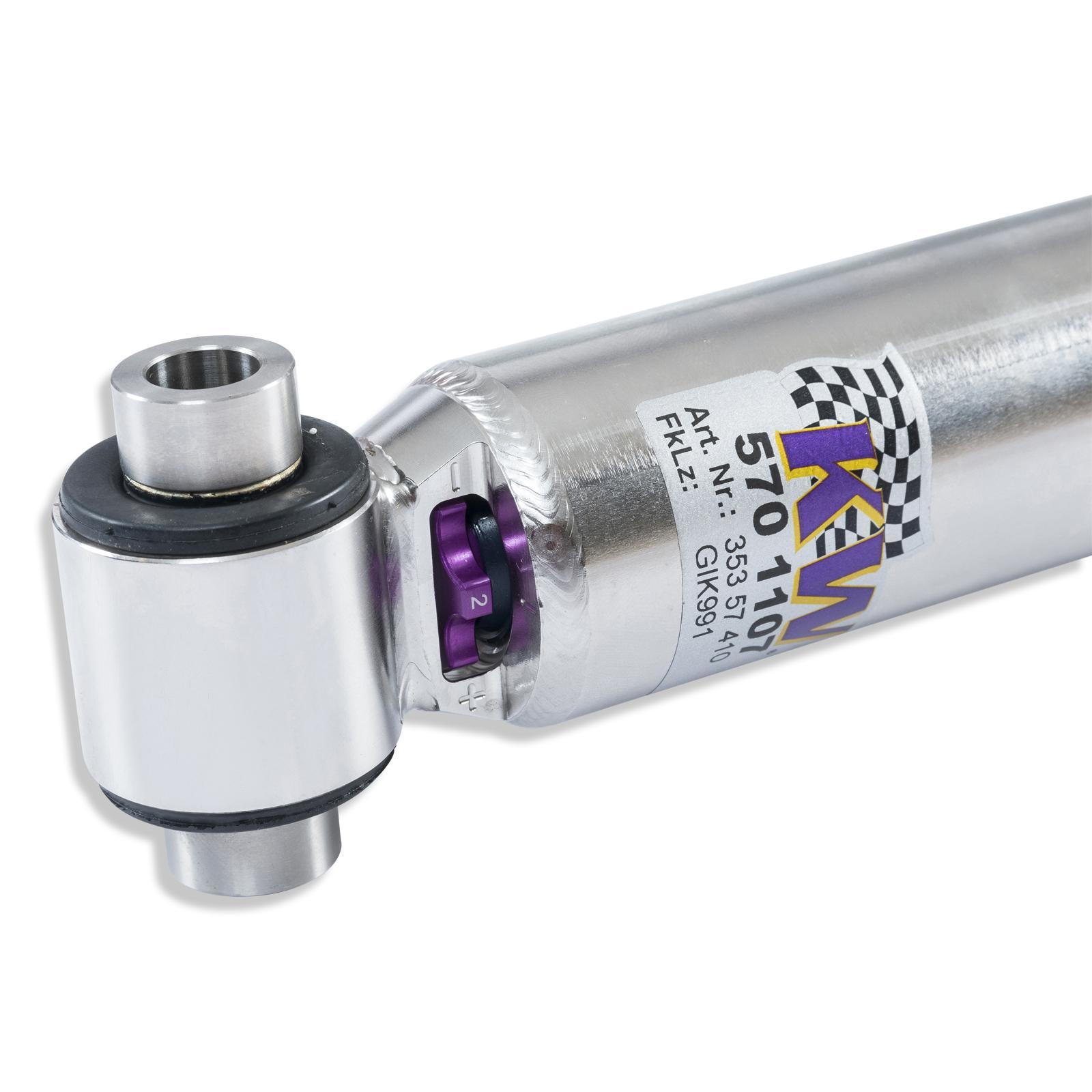 Die Fahrwerksabstimmung erfolgt mit umfangreichen Tests auf Prüfständen, Landstraßen und der Nordschleife. Über die fein abgestufte Klickverstellung lässt sich das Handling individuell auf Reifen, Fahrzeuggewicht und Straßenzustand anpassen. Durch die Trennung von Zug- und Druckstufe genießen Sie die perfekte Balance zwischen Komfort und Sportlichkeit. Zusätzlich sorgt das KW Trapezgewinde für eine langlebige stufenlose Tieferlegung mit optischer und fahrdynamischer Aufwertung.