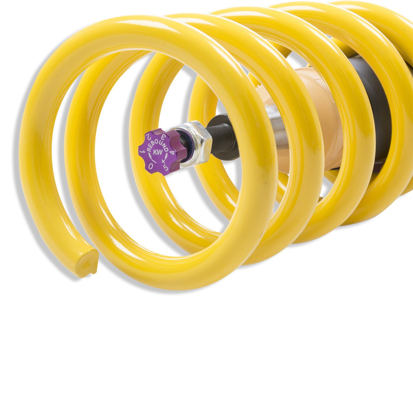 Aus hochwertigem Edelstahl gefertigt, garantiert das Fahrwerk dauerhafte Korrosionsbeständigkeit und Langlebigkeit. Die stufenlose Höhenverstellung ermöglicht es Ihnen, die Fahrzeugtieferlegung optimal auf Fahrstil und Optik abzustimmen. Durch die patentierte KW Ventiltechnik können Sie die Druck- und Zugstufe voreinstellen, um präzise auf unterschiedliche Reifencharakteristiken, Straßenverhältnisse oder Fahrzeugmodifikationen zu reagieren. Perfekt für Performance-orientierte Fahrer, die ihr Fahrzeug individuell optimieren möchten.