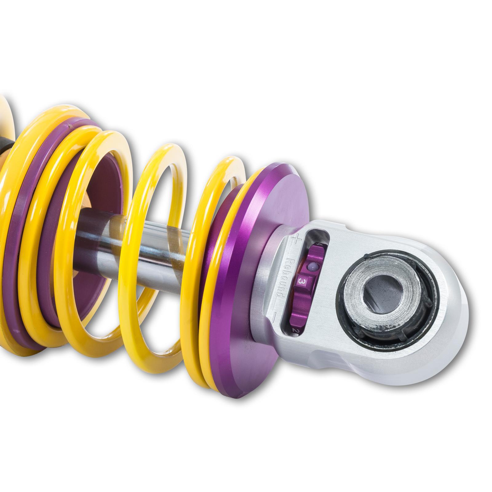 Das KW Gewindefahrwerk V4 passend für Audi R8 (4S) bietet Ihnen herausragende Performance und individuelle Einstellmöglichkeiten für maximale Fahrzeugkontrolle. Dank der Kombination aus Edelstahl- oder Aluminium-Gewindefederbeinen und dreifach einstellbaren High-Performance-Dämpfern können Sie Ihr Fahrzeug optimal an Ihre Fahrweise anpassen. Die unabhängige Abstimmung von Zugstufe sowie Low- und Highspeed-Druckstufendämpfung basiert direkt auf der erfolgreichen KW Rennsporttechnologie, die in zahlreichen 24h-Rennen eingesetzt wird.