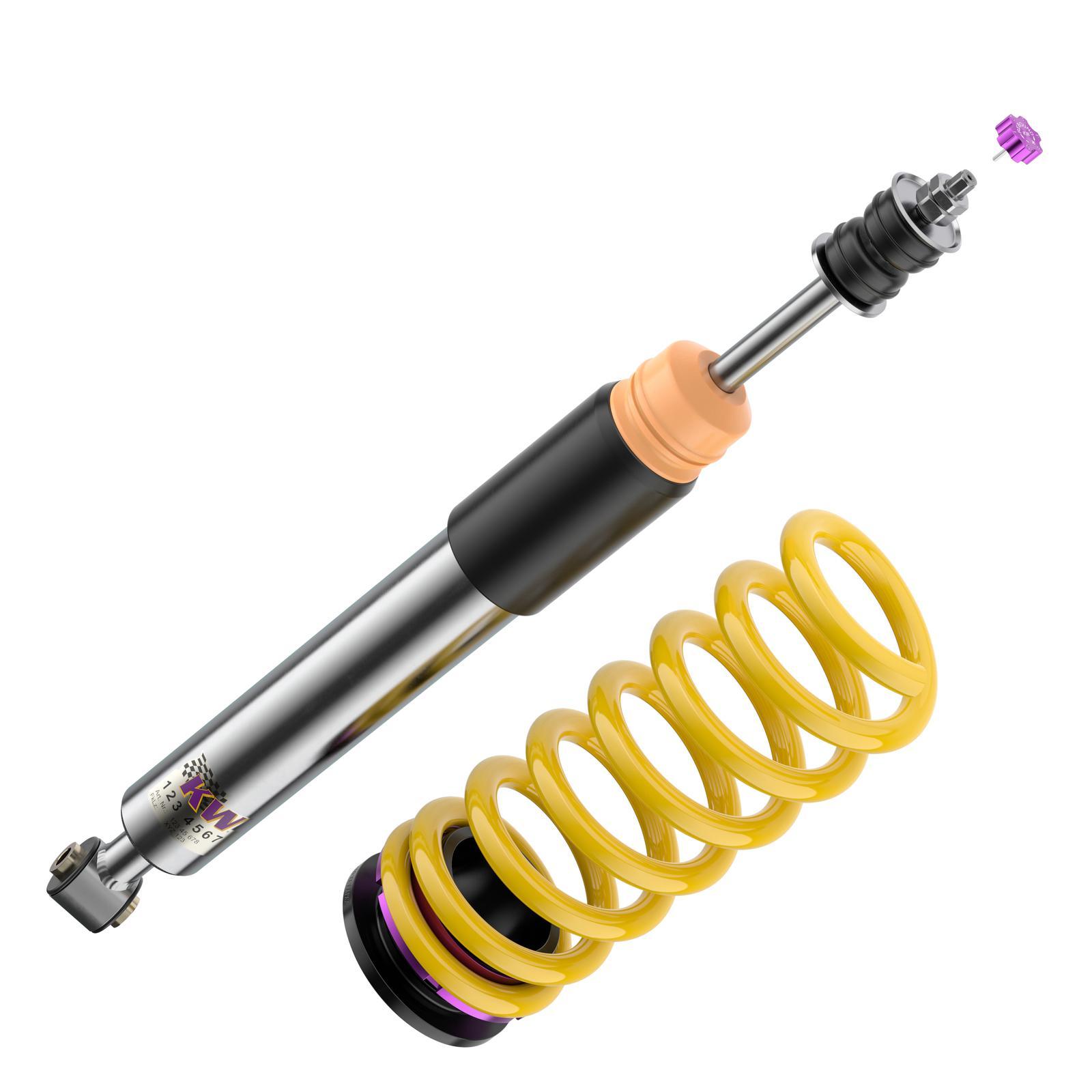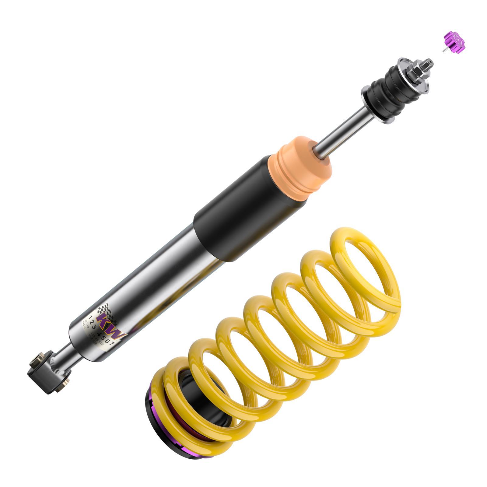 Die KW Ingenieure haben das V2-Fahrwerk auf der Nürburgring Nordschleife und auf dem hauseigenen 7-Post-Prüfstand entwickelt, um Ihnen eine fahrzeugspezifische Abstimmung mit höchster Präzision zu bieten. Durch die einstellbare Zugstufe lässt sich die Balance zwischen sportlicher Straffheit und komfortabler Fahrweise gezielt variieren – perfekt für den täglichen Einsatz oder die sportliche Landstraßenfahrt.