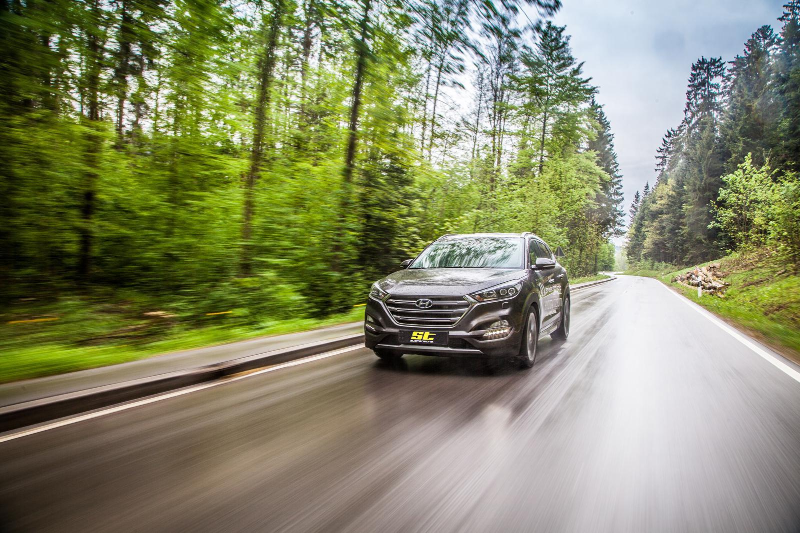 Über den Polyamid-Verstellfederteller lässt sich die Tieferlegung stufenlos variieren, auch im eingebauten Zustand. Das verzinkte Federbein mit zusätzlicher Versiegelung schützt zuverlässig vor Korrosion und garantiert eine lange Lebensdauer. Bereits in der Grundeinstellung fährt sich der Hyundai Tucson mit dem ST XA Gewindefahrwerk spürbar agiler und bietet ein deutlich sportlicheres Handling als das Serienfahrwerk.