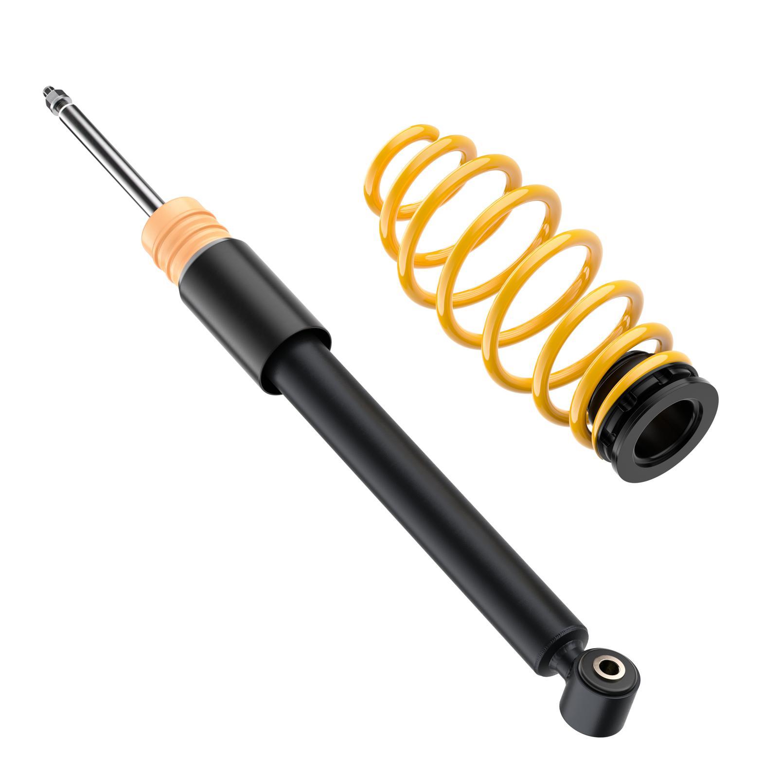 Die stufenlose Tieferlegung erfolgt bequem über den Polyamid-Verstellfederteller auf dem verzinkten Gewindefederbein. Dabei ermöglicht die Konstruktion eine Anpassung der Fahrzeughöhe auch im eingebauten Zustand – für maximale Flexibilität beim Feintuning. Bei Fahrzeugen mit Doppelquerlenker-Hinterachse erfolgt die Höheneinstellung über die spezielle ST Suspensions Hinterachshöhenverstellung.