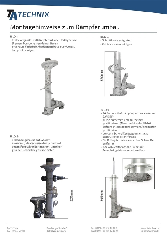 Hinweis: Bei diesem System ist es nicht notwendig, die originalen vorderen Federbeine für den Umbau einzusenden.