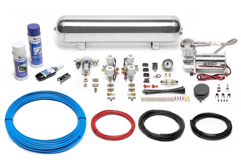 Das Kit enthält alles, was Sie für den Aufbau einer Lufterzeugungseinheit benötigen – vom Kompressor und Druckanzeige bis hin zu Schläuchen, Ventilen und Elektronikkomponenten. Die hochwertige Verarbeitung und das moderne Design mit blauer Schlauchfarbe und weißer Anzeige sorgen für Funktionalität und eine ansprechende Optik. Beachten Sie, dass Einzelteile nicht im Geltungsbereich der StVZO zulässig sind, das Set jedoch in Verbindung mit einem kompletten Luftfahrwerk inklusive Teilegutachten nach §19.3 genutzt werden kann.