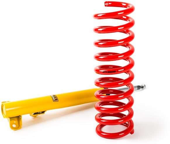 Dank der hochwertigen Materialien und einer robusten Zweirohr-Technologie bietet dieses Fahrwerk eine konstante Dämpferleistung bei intensiver Nutzung. Gasunterstützte Stoßdämpfer verhindern die Schaumbildung im Öl und ermöglichen somit eine gleichmäßige und effiziente Stoßdämpfung auch bei sportlicher Fahrweise. Die Federn von Eibach unterstreichen die Qualität und geben dem Fahrzeug eine sportlich-tiefe Optik zum attraktiven Preis-Leistungs-Verhältnis.