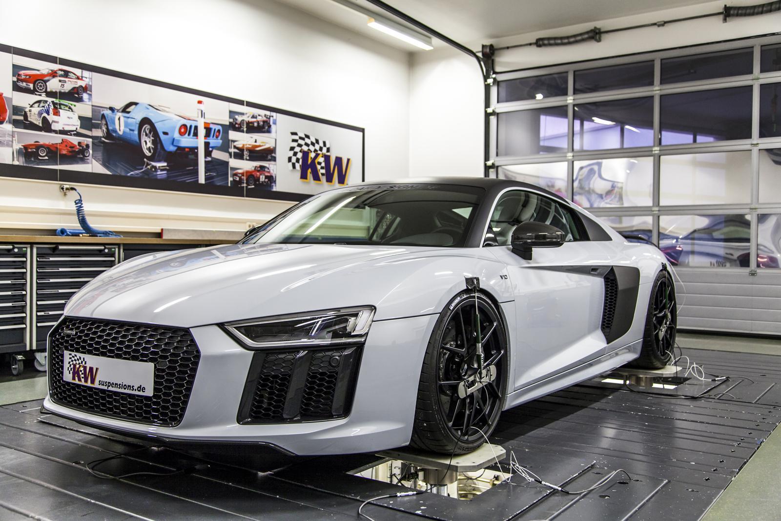 Der KW höhenverstellbare Federnsatz ermöglicht eine stufenlose Tieferlegung Ihres Fahrzeugs, passend für Audi R8 (4S) Spyder 4S9, 42. Im Gegensatz zu herkömmlichen Federnsätzen erlaubt das System eine individuelle Anpassung innerhalb des geprüften Einstellbereichs. Dank speziell entwickelter Federaufnahmen, abgestimmter KW Tieferlegungsfedern sowie passenden Elastomeren und Staubschutzsystemen bleibt das serienmäßige Dämpfersystem – ob elektronisch oder hydraulisch – aktiv.