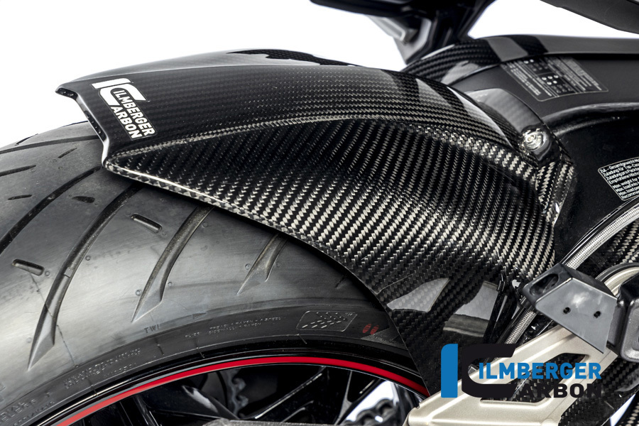 Die Carbon-Hinterradabdeckung bietet nicht nur eine exklusive Optik, sondern auch deutlich verbesserten Schutz vor Steinschlag und Schmutz im Bereich des Federbeins. Dank der verlängerten Form wird die Schutzwirkung im Vergleich zum Originalteil erheblich verbessert, ohne die sportliche Linienführung der BMW zu beeinträchtigen. Das Gewicht des Bauteils wird – wie bei Ilmberger üblich – mittels Prepreg-Technologie im Autoklaven gefertigt, was zu einer Gewichtsersparnis von rund 70 % gegenüber dem Original führt.