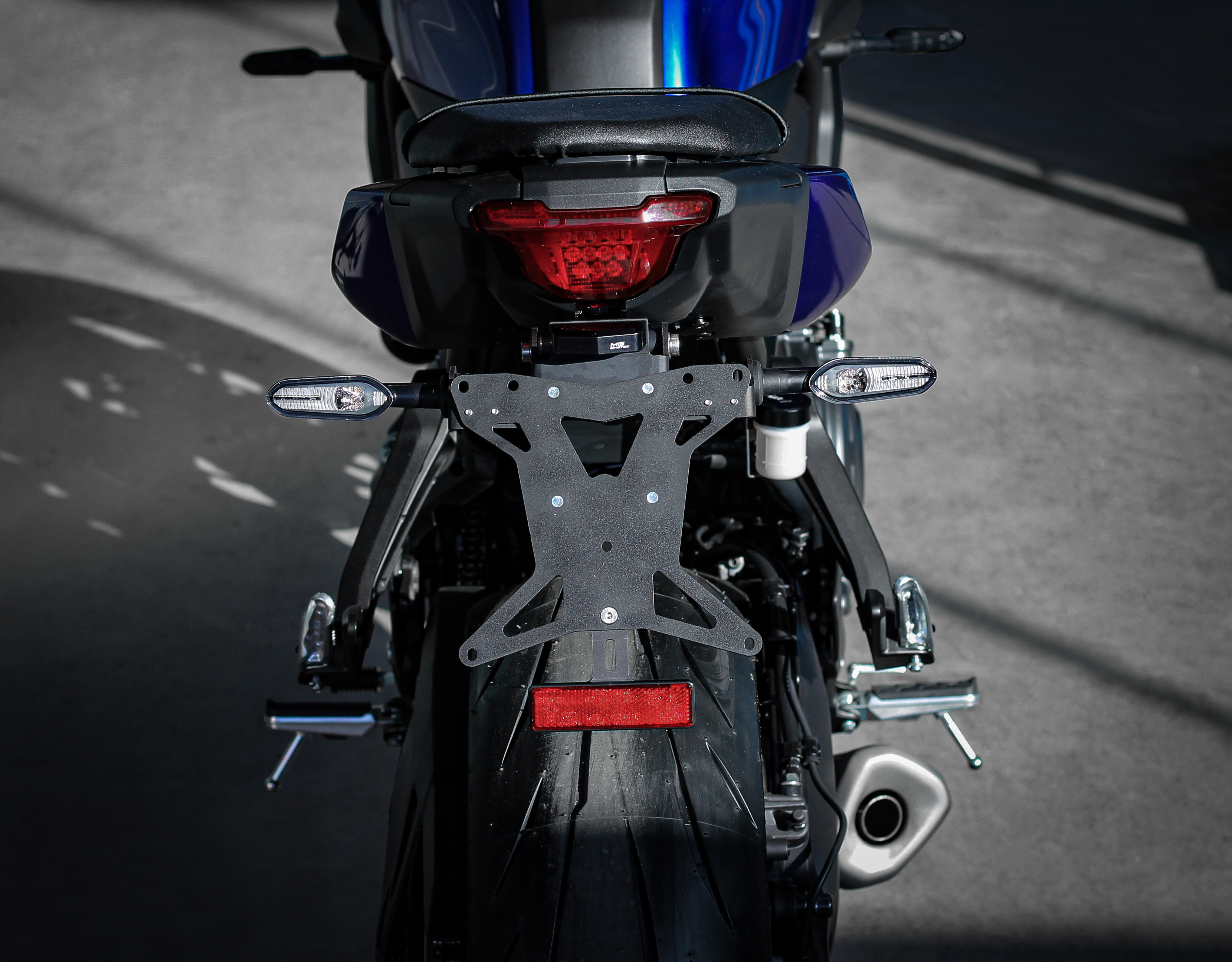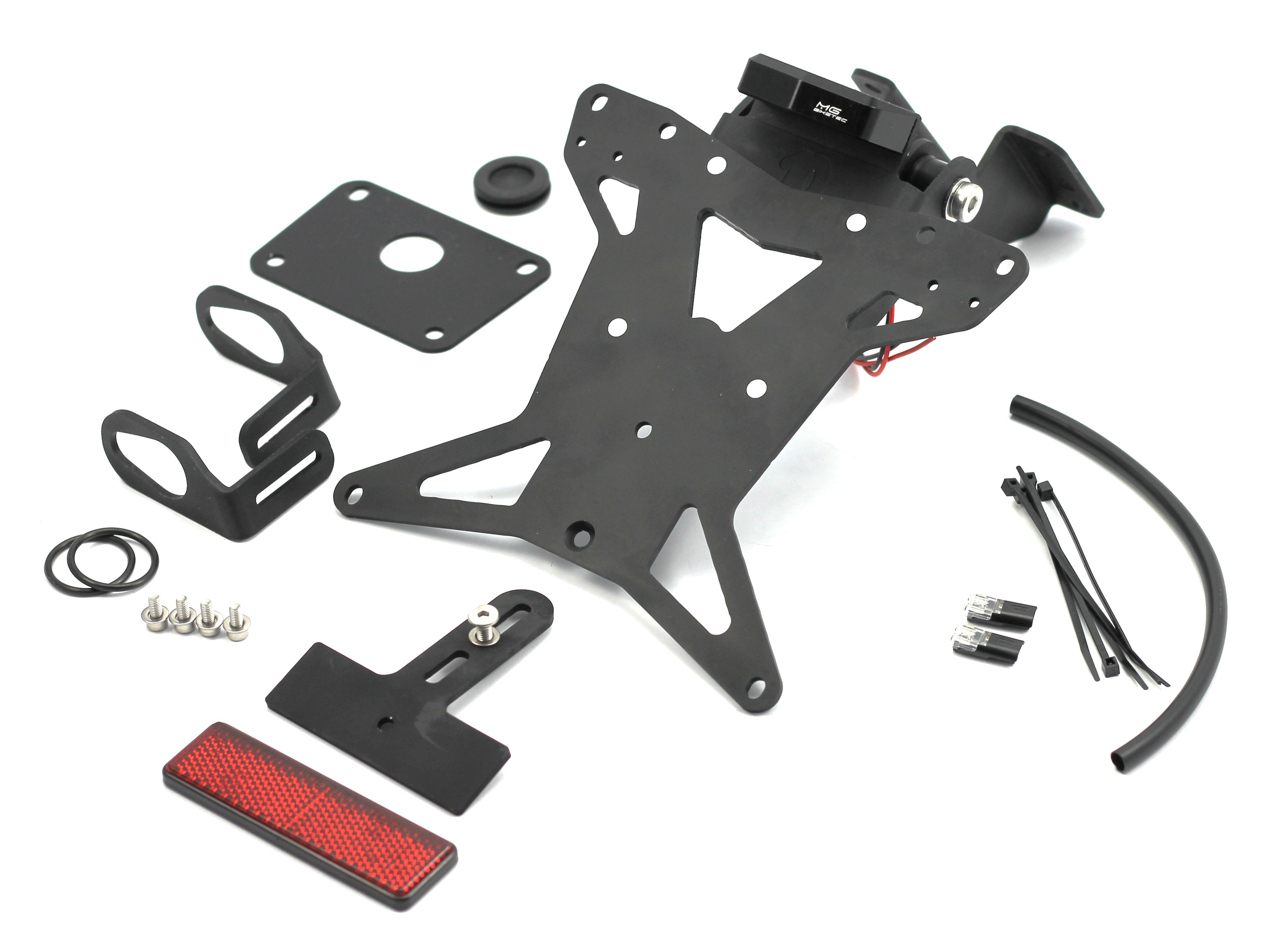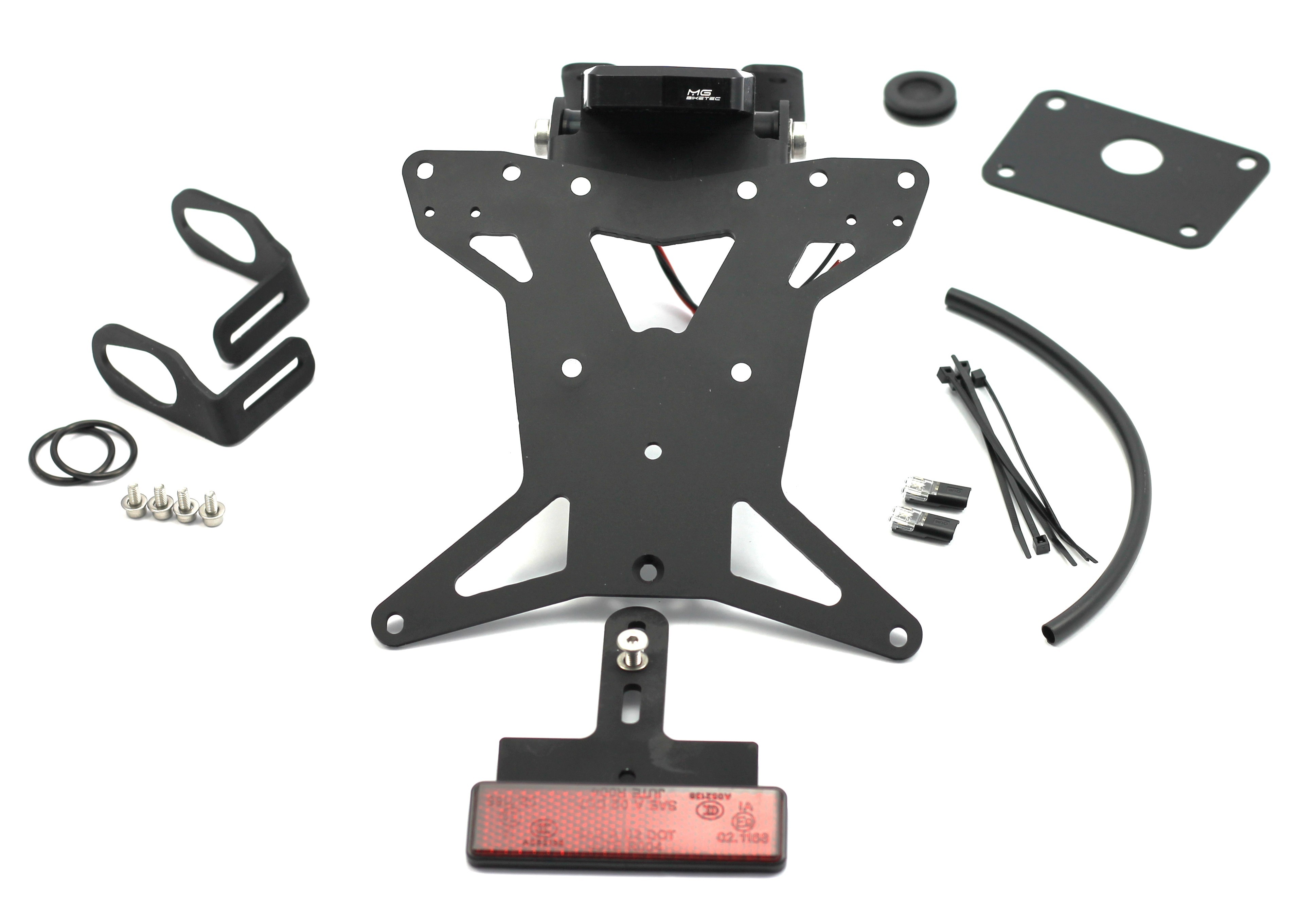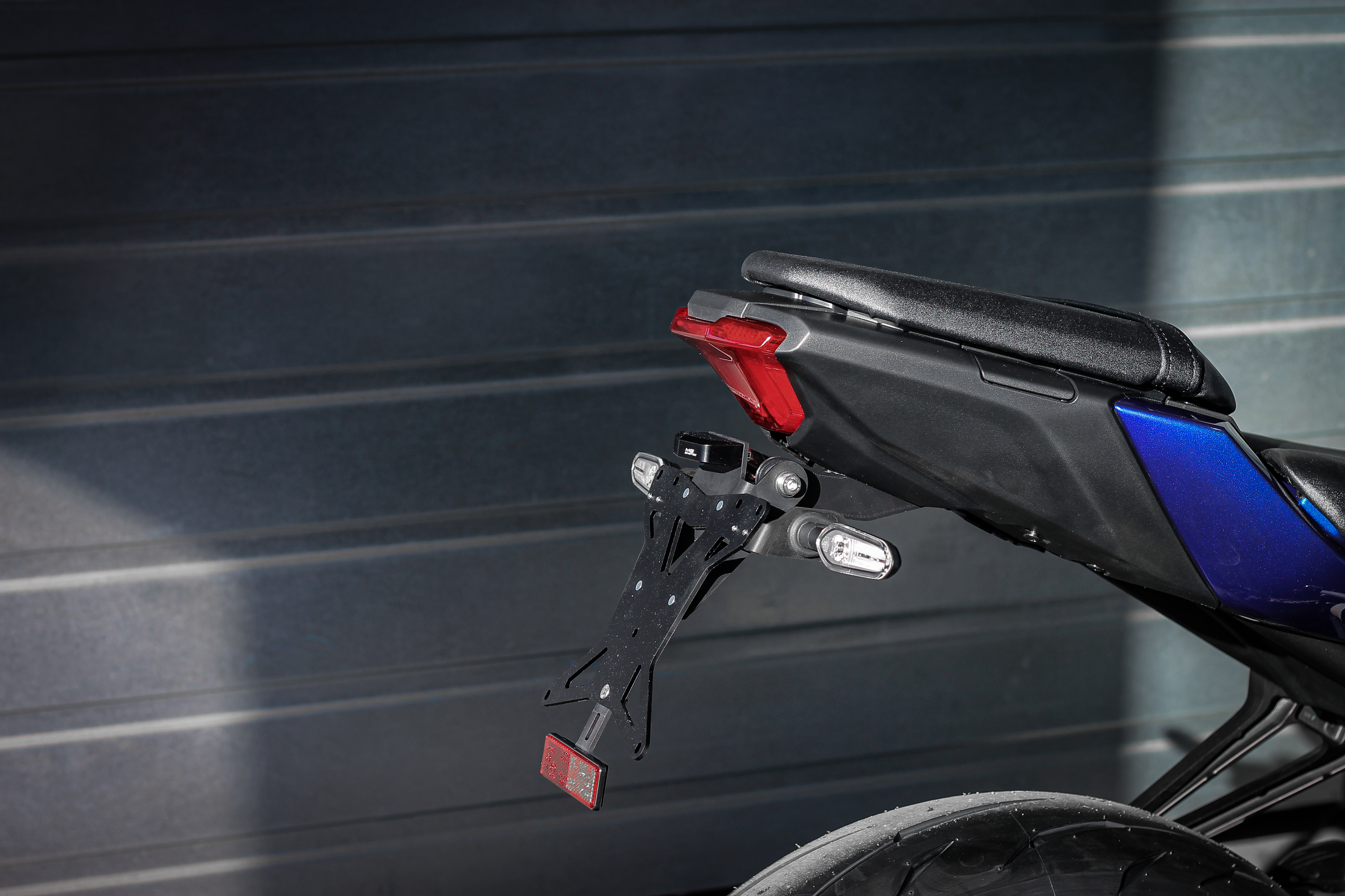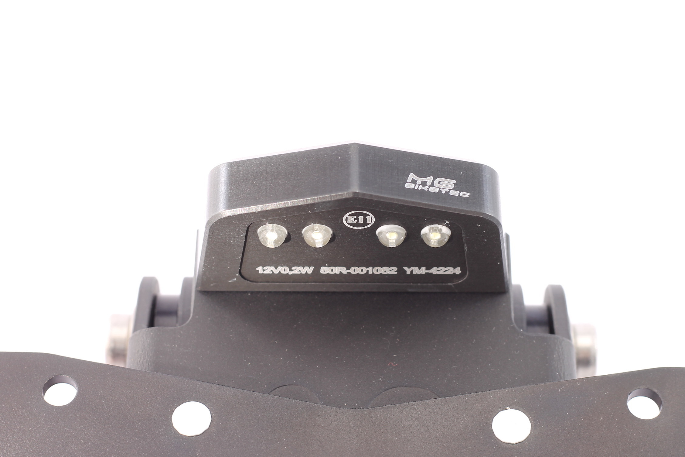 Der hochwertige MG Biketec Kennzeichenhalter passend für Yamaha MT-07 ab 2025 überzeugt mit einem kompakten, sportlichen Design und hoher Funktionalität. Durch die robuste CNC-gefräste Aluminiumkonstruktion und matt-schwarz eloxierte Oberfläche ist der Halter besonders widerstandsfähig und witterungsbeständig. Der vollständig verstellbare Nummerntafel-Winkel ermöglicht eine exakte Anpassung an Ihre individuellen Ansprüche. Die integrierte LED-Kennzeichenbeleuchtung und der Reflektor sind mit ECE-Kennzeichnung versehen und sorgen für maximale Sicherheit im Straßenverkehr. Der Kennzeichenhalter ist kompatibel mit Originalblinkern und lässt sich dank Plug-and-Play-Montage einfach installieren – lediglich ein Steckverbinder muss getrennt werden.