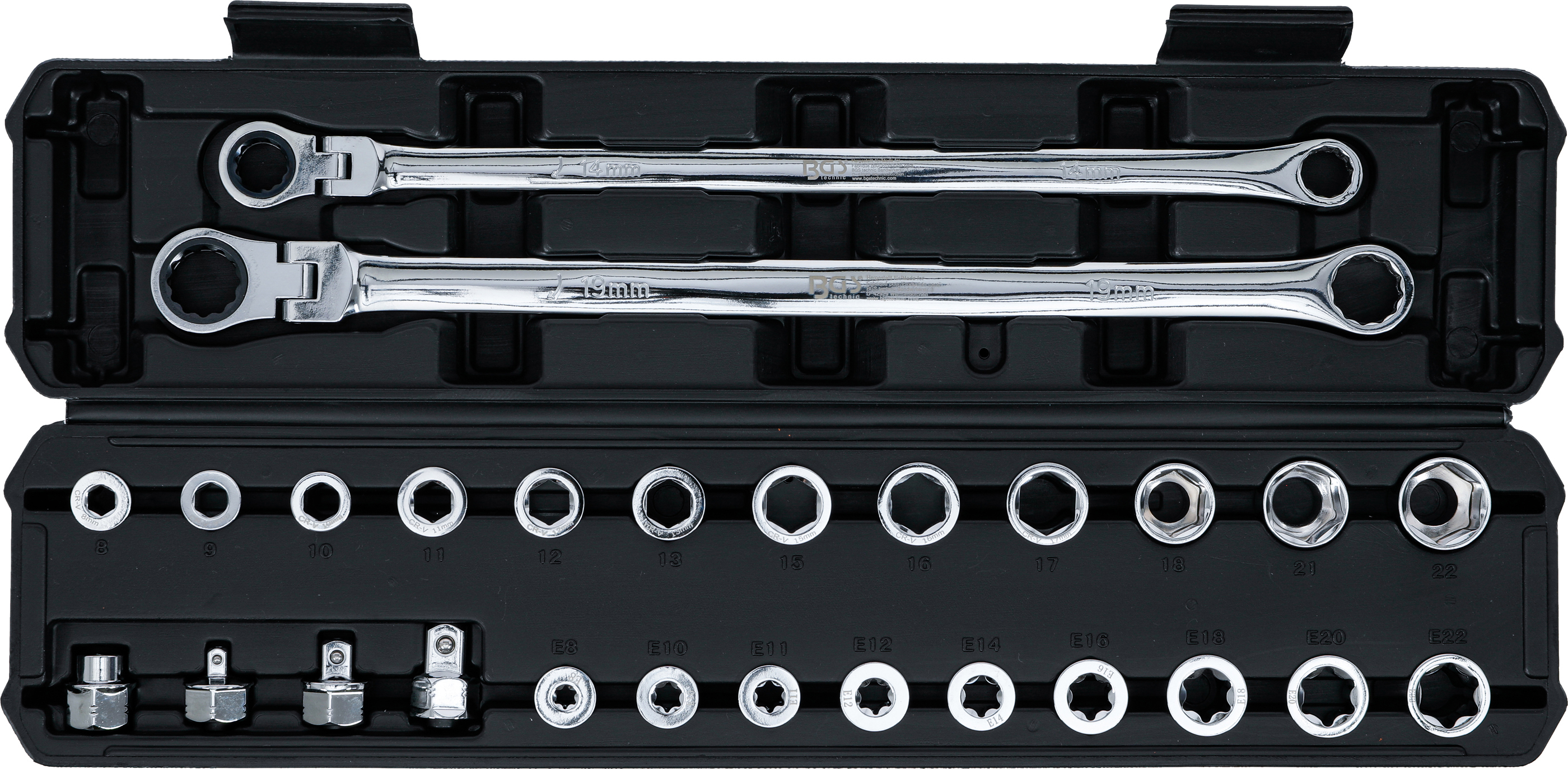 - 1 Adapter mit Außenvierkant 12,5 mm (1/2") für Ringschlüssel SW 19 mm
