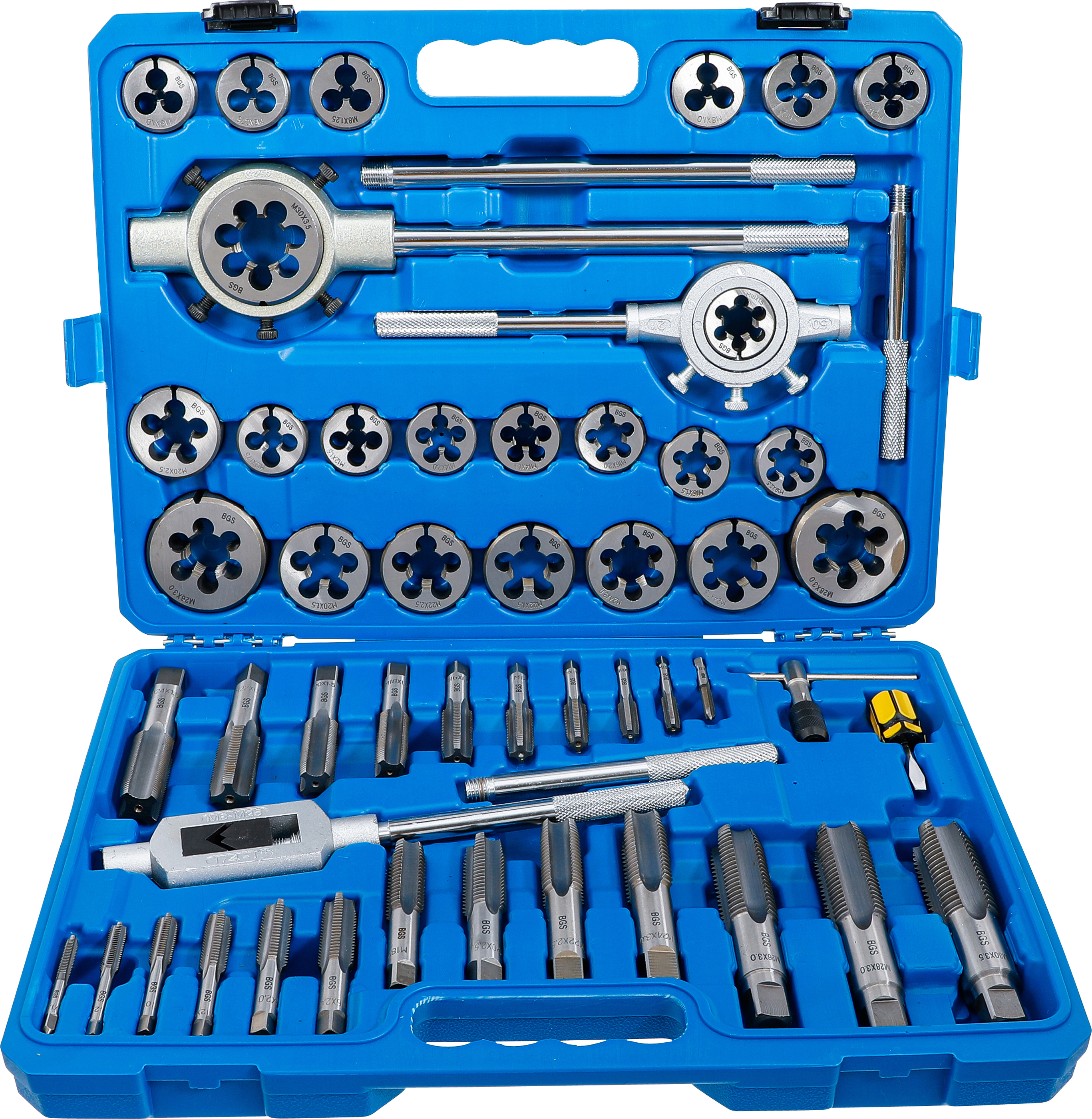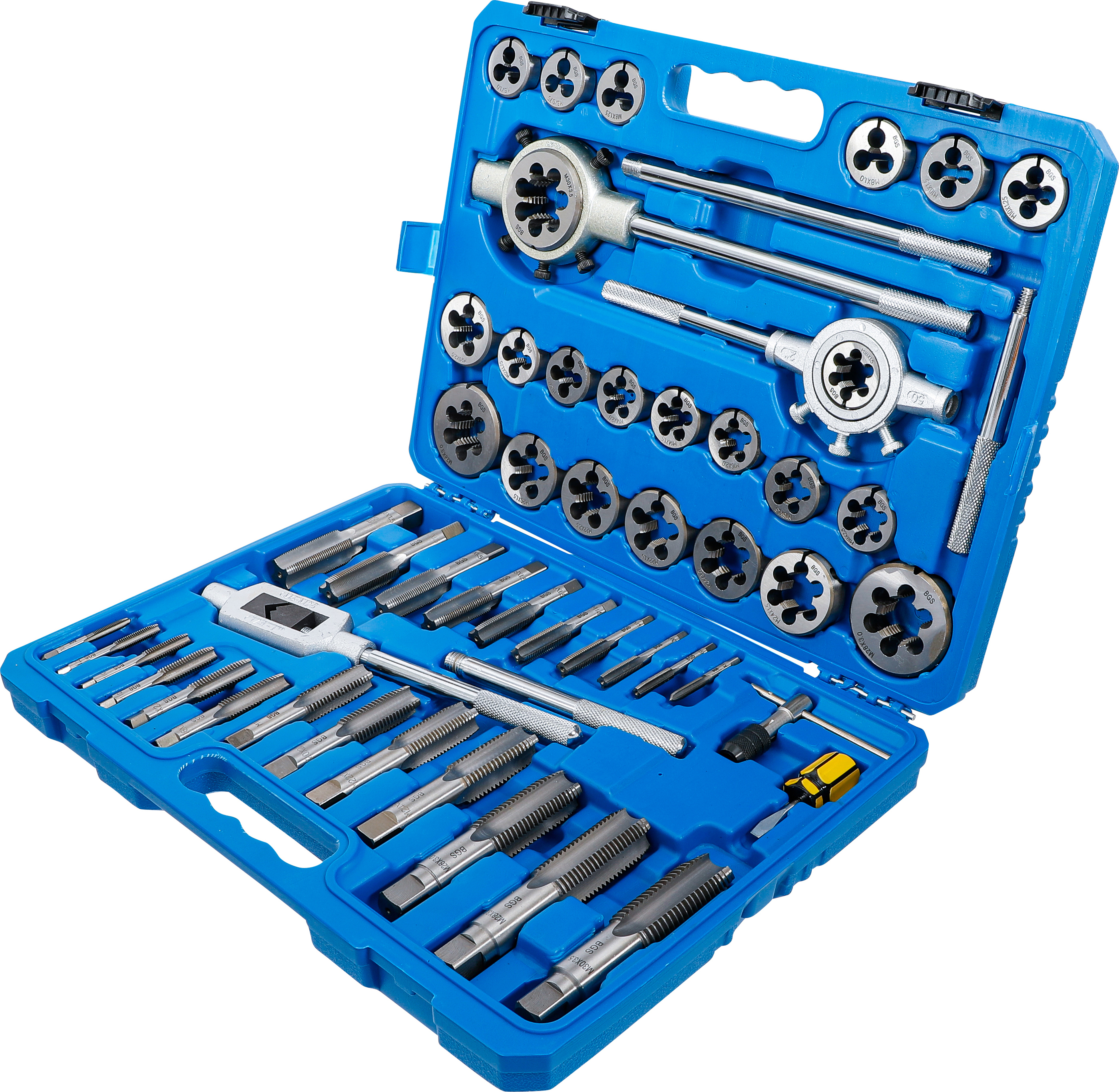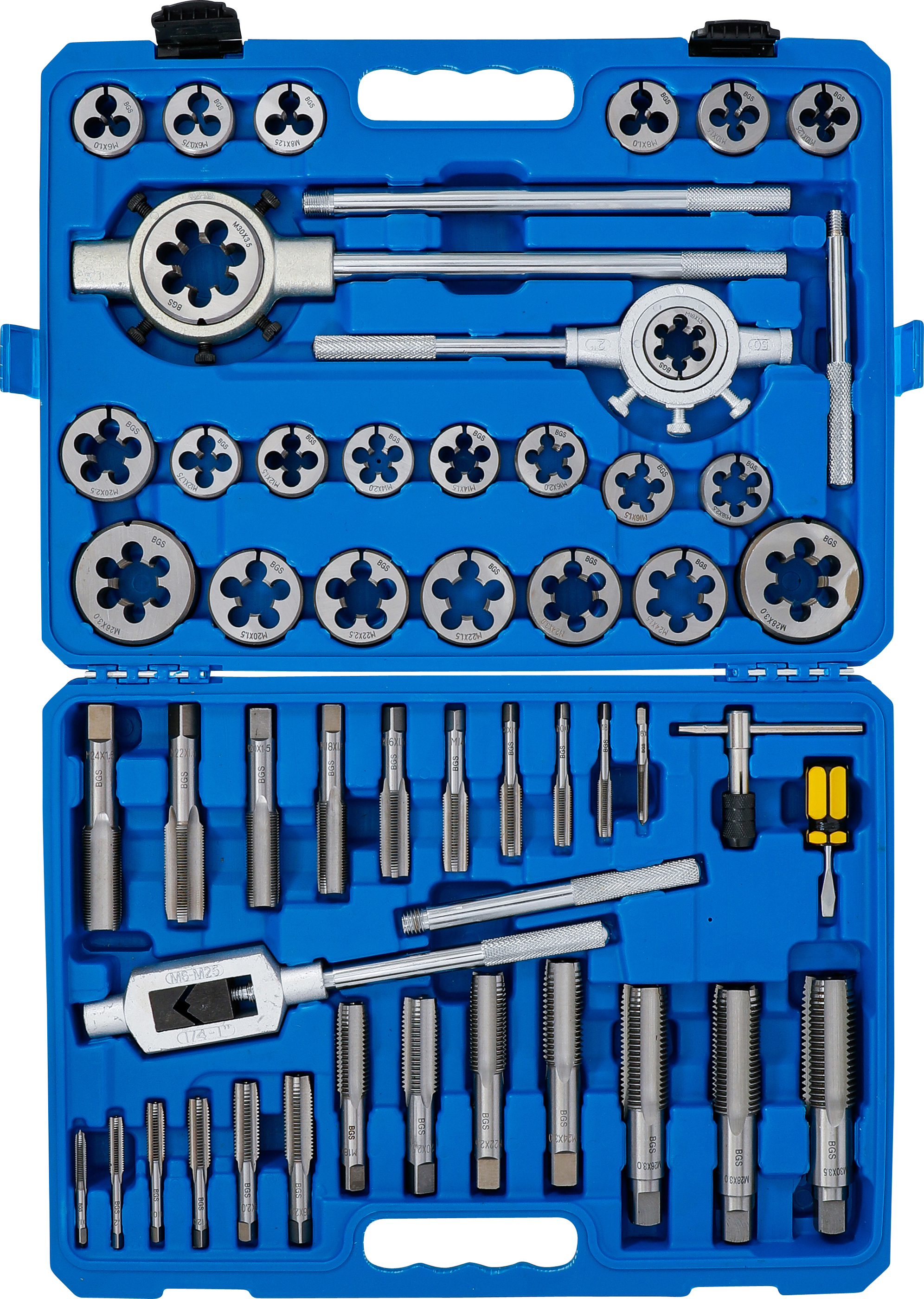 - 23 Gewindebohrer und 23 Schneideisen in Größen M6 x 1,0 bis M30 x 3,5