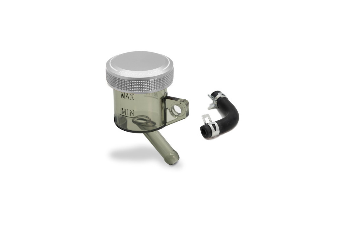 Der Barracuda Universal Ausgleichsbehälter ist ein hochwertiges Zubehörteil für Motorräder. Er wurde speziell für den Einsatz als Bremsflüssigkeitsbehälter entwickelt und kombiniert Funktionalität mit modernem Design. Der transparente Kunststoffkörper ermöglicht eine schnelle Sichtprüfung des Flüssigkeitsstands, während der CNC-gefräste Aluminiumdeckel in silber eloxiertem Finish nicht nur optisch überzeugt, sondern auch für eine hohe Haltbarkeit sorgt.