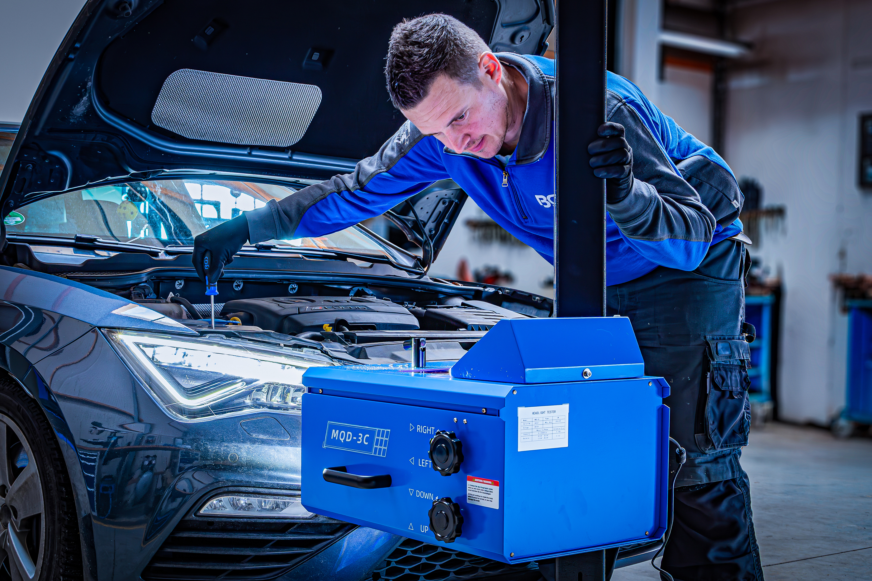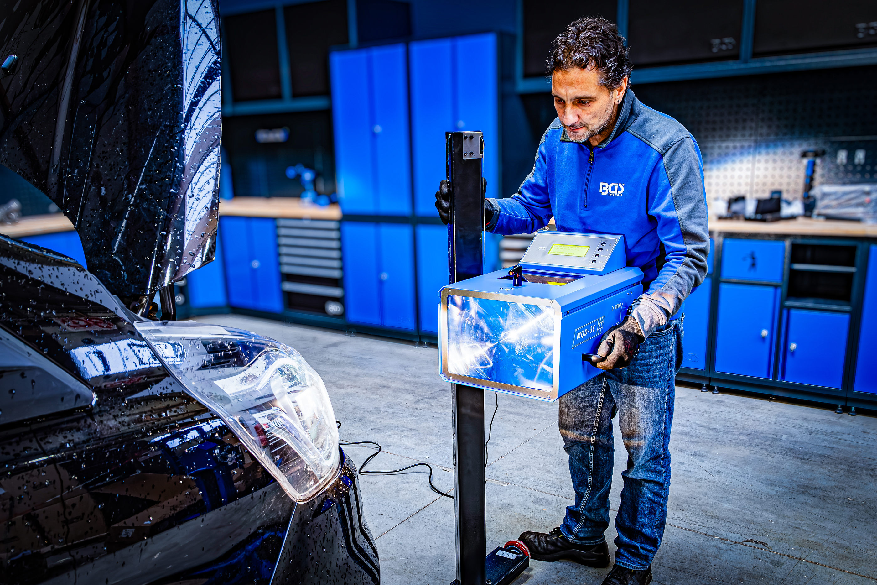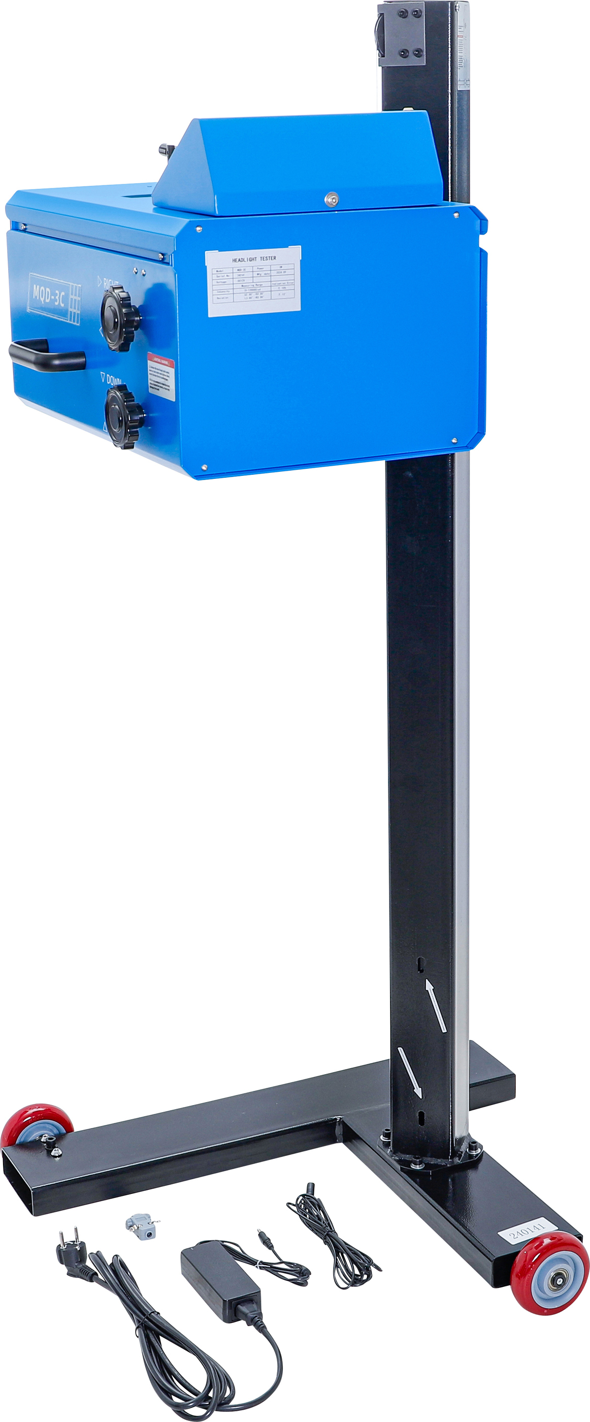 Das Scheinwerfer-Einstellgerät wurde entwickelt, um eine genaue und zuverlässige Ausrichtung von Abblendlicht und Fernlicht an Fahrzeug-Frontscheinwerfern zu gewährleisten. Dank der horizontalen und vertikalen Einstellskala ermöglicht das System präzises Arbeiten und reduziert Fehleinstellungen. Durch seine einfache Handhabung und modulare Bauweise ist es besonders für Werkstätten und Prüfstationen geeignet.
