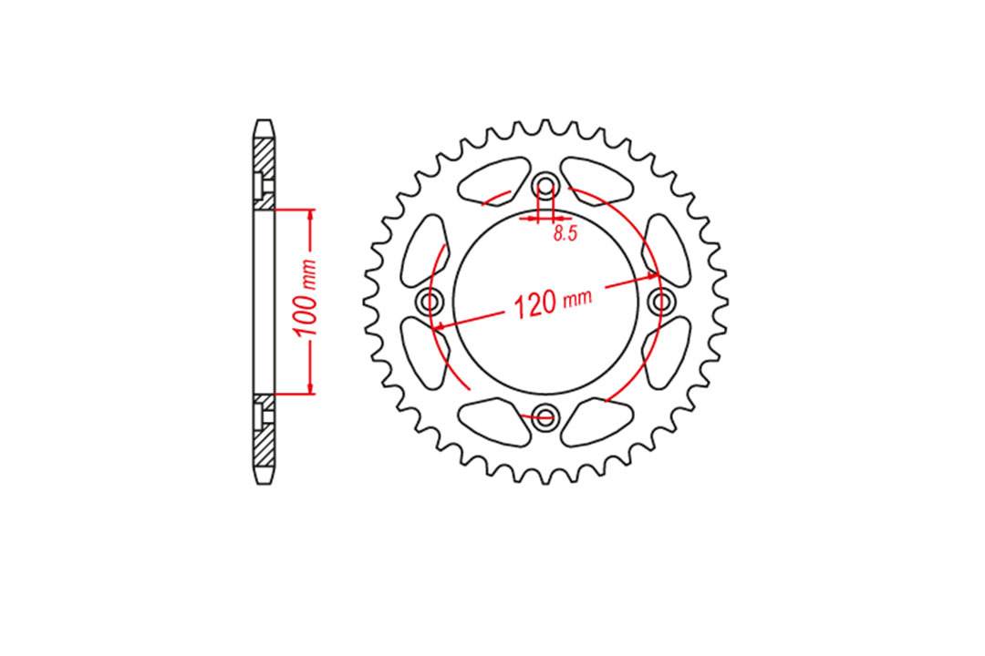 - Auch als maßgefertigtes Aluminium-Kettenrad erhältlich