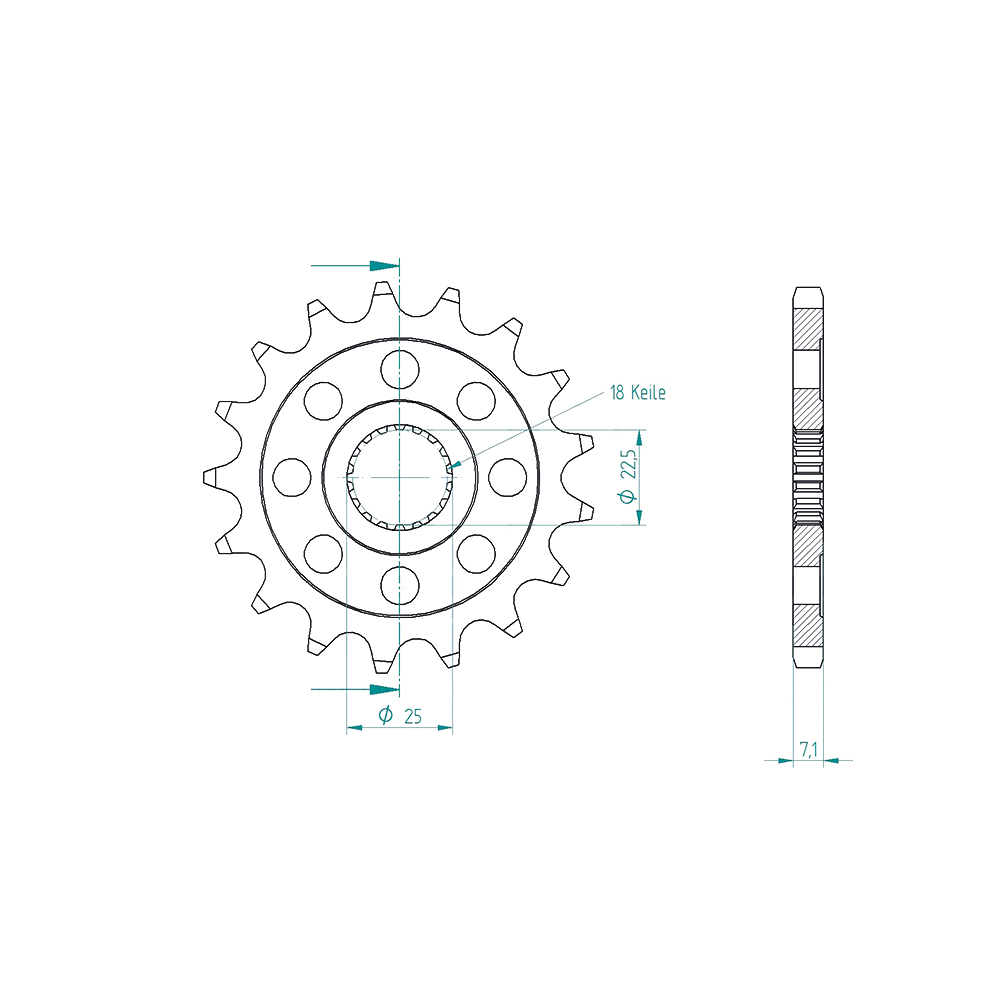 - Teilung 525 und 16 Zähne für optimale Übersetzung