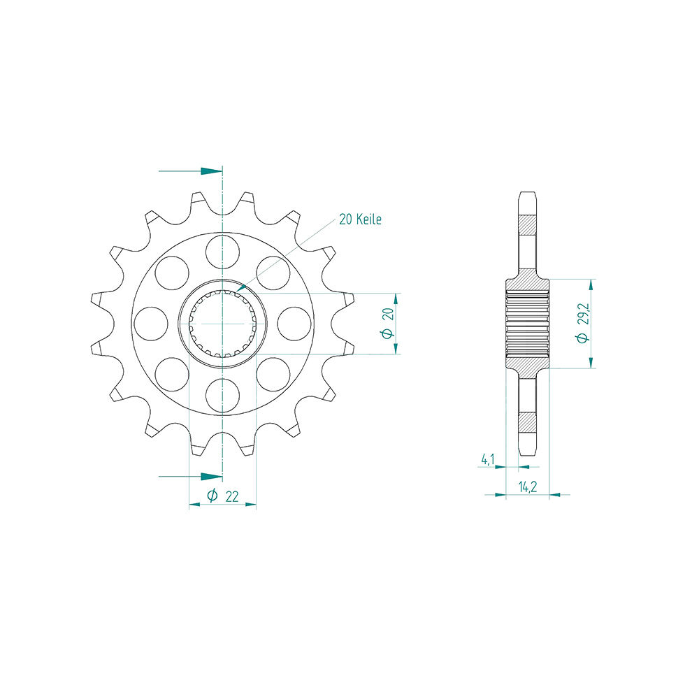 - Präzisionsgefertigtes Stahlritzel mit 15 Zähnen