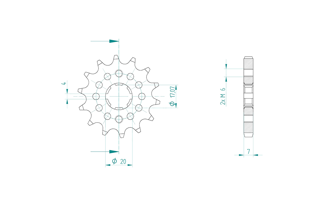 - Präzise gefertigtes Ritzel mit 14 Zähnen und Teilung 428