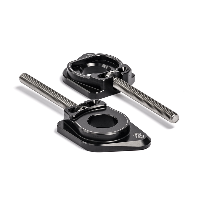 Der GILLES Achsblock zeichnet sich durch höchste Präzision und Funktionalität aus. Die schwarz eloxierte Oberfläche verleiht nicht nur einen hochwertigen Look, sondern auch Schutz vor Korrosion. Das System ermöglicht das exakte Einstellen der Kettenspannung und kompensiert Serientoleranzen. Dank der präzisen Skalierung lässt sich die gewünschte Einstellung einfach und reproduzierbar vornehmen. Die Spezialschraube erlaubt die Achsverstellung in beide Richtungen, was die Handhabung deutlich erleichtert. Der Achsblock verbleibt bei der Hinterradmontage in der Schwinge und unterstützt die Achse zuverlässig gegen Zug- und Druckkräfte. Zudem kann er mit der originalen Achsmutter verwendet werden.