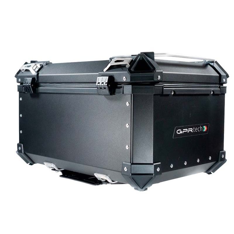 Das GPR TECH ALPI-TECH Topcase bietet mit 55 Litern großzügigen Stauraum und besteht aus widerstandsfähigem 5052 Aluminium mit verstärkten Ecken. In elegantem Schwarz gehalten, überzeugt es durch hohe Stabilität und modernes Design. Dank der mitgelieferten spezifischen Montageplatte und Hardware lässt sich das Topcase ohne Änderungen am originalen Gepäckträger montieren. Es bietet Platz für einen Enduro-Helm und enthält ein waschbares, herausnehmbares Innenfutter zum Schutz Ihres Helmes und Ihrer persönlichen Gegenstände. Der Rückenschutz für den Sozius sowie eine abnehmbare Objekttasche sind separat erhältlich.