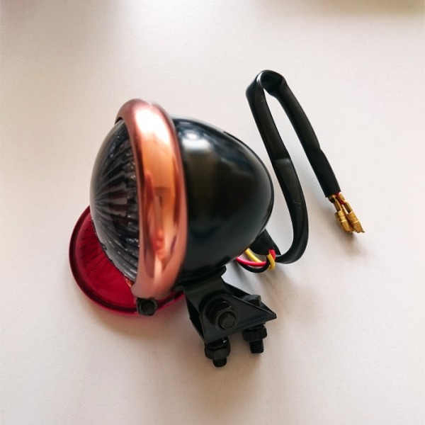- 1x LED-Rücklicht Bates-Style schwarz/kupfer Ø57 mm