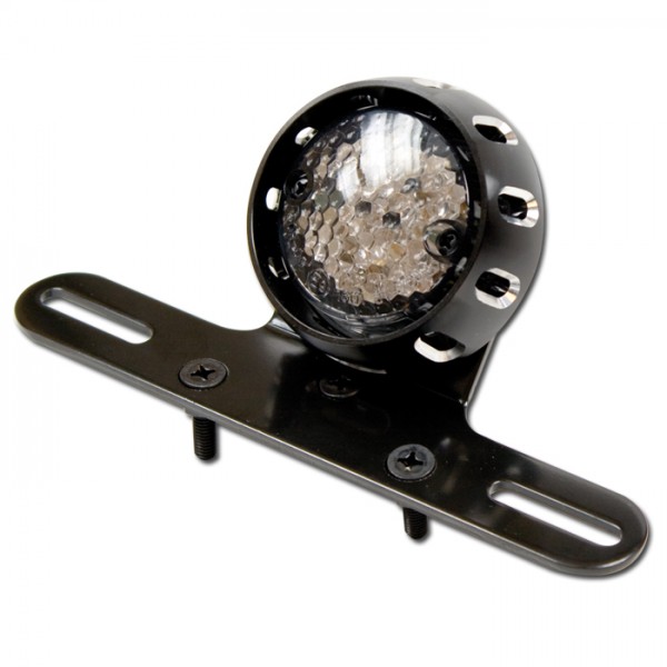 Das hochwertige LED-Rücklicht "CNC" überzeugt durch sein modernes Design, getöntes Glas und ein robustes Gehäuse in Schwarz. Dank der integrierten Kennzeichenbeleuchtung (KZB) und der E-Prüfung ist dieses Rücklicht ideal für den straßenzugelassenen Einsatz. Mit einem Durchmesser von Ø=58 mm und Langlöchern bis maximal 16 cm ermöglicht es eine flexible Montage an verschiedenen Fahrzeugen. Der stabile Halter sorgt für sicheren Halt und einfache Installation.