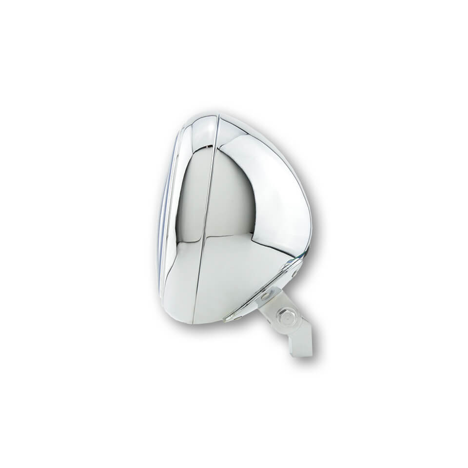 Der SHIN YO 7 Zoll Scheinwerfer Yuma 2 überzeugt durch sein klassisches Design und seine hochwertige Verarbeitung. Er ist in den Varianten chrom und schwarz erhältlich und bietet durch sein massives Metallgehäuse maximale Stabilität. Der runde Hauptscheinwerfer in Halbkugel-Form ist nicht nur ein optisches Highlight, sondern auch besonders robust und einfach zu montieren. Dank des umkehrbaren Halters lässt sich der Scheinwerfer entweder näher am Lenkkopf oder weiter entfernt positionieren – ideal für individuelle Umbauten. Der Yuma 2 unterscheidet sich vom Vorgängermodell durch ein glattes Gehäuse ohne Wölbungen. E-geprüft und mit H4 60/55W Einsatz inklusive Standlicht ausgestattet, sorgt dieser Prismenreflektor-Scheinwerfer für optimale Leuchtkraft und Sicherheit bei Tag und Nacht.