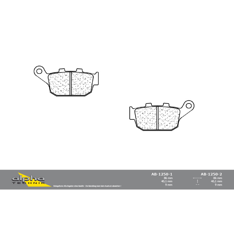 Der alpha Technik Bremsbelag Straße mit ABE ist ein hochwertiger Sintermetall-Bremsbelag passend für Honda und Suzuki Motorräder. Entwickelt für den Straßenbetrieb und sportliches Renntraining überzeugt er durch eine herausragende Bremsleistung auch unter extremen Bedingungen. Selbst bei schweren und leistungsstarken Motorrädern bietet der Bremsbelag exzellenten Grip, konstante Bremskraft und kein Fading.