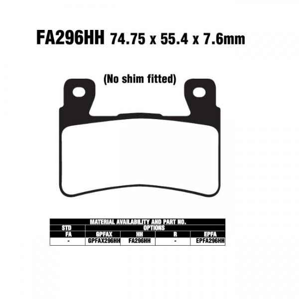 - 1 Satz EBC FA296 HH Sinter-Bremsbeläge für Vorderachse oder Hinterachse (je nach Modell)