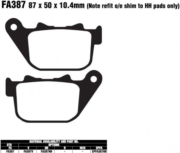 Die EBC FA387 HH Bremsbeläge bieten höchste Bremsleistung und Stabilität für anspruchsvolle Fahrerinnen und Fahrer. Durch die HH‑Einstufung erhalten Sie hervorragende Bremskraft bei Nässe und Trockenheit sowie eine gleichbleibende Performance auch bei hohen Temperaturen. Diese Sinterbeläge sind speziell entwickelt, um eine optimale Kombination aus Langlebigkeit, geringer Bremsstaubentwicklung und präzisem Ansprechverhalten zu gewährleisten.
